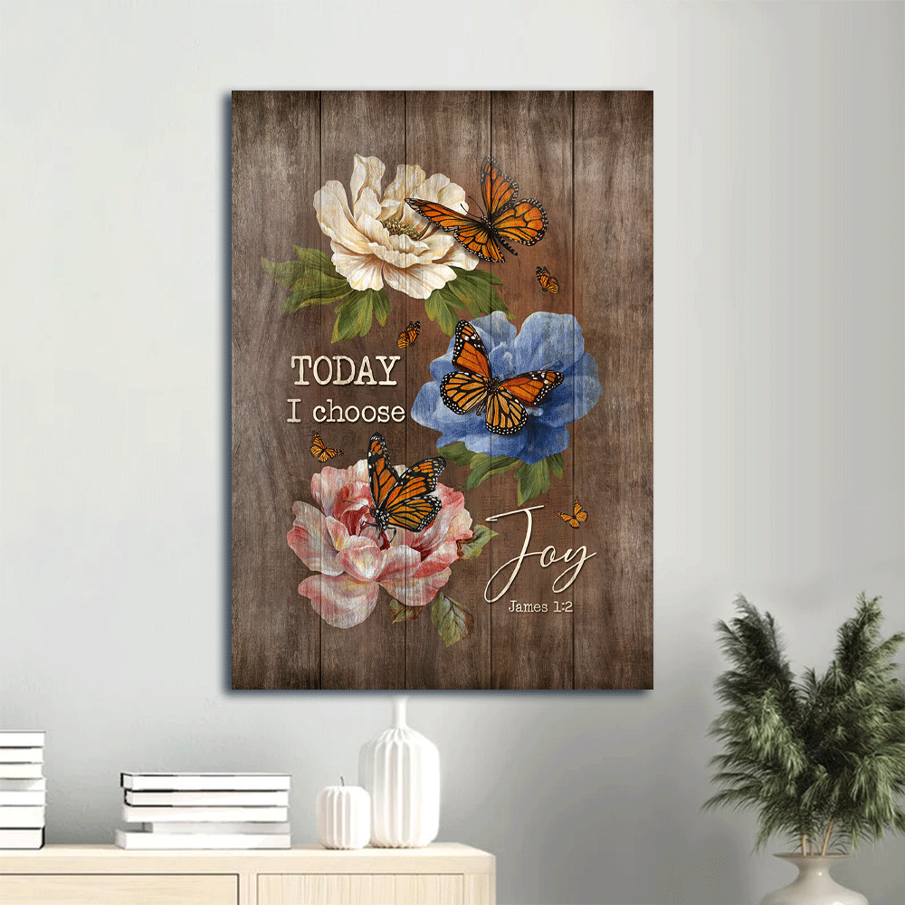 Jesus Portrait Canvas- Monarch butterfly, Colorful camellia, Sweet garden canvas- Gift for Christian- Today I choose joy - Portrait Canvas Prints, Christian Wall Art