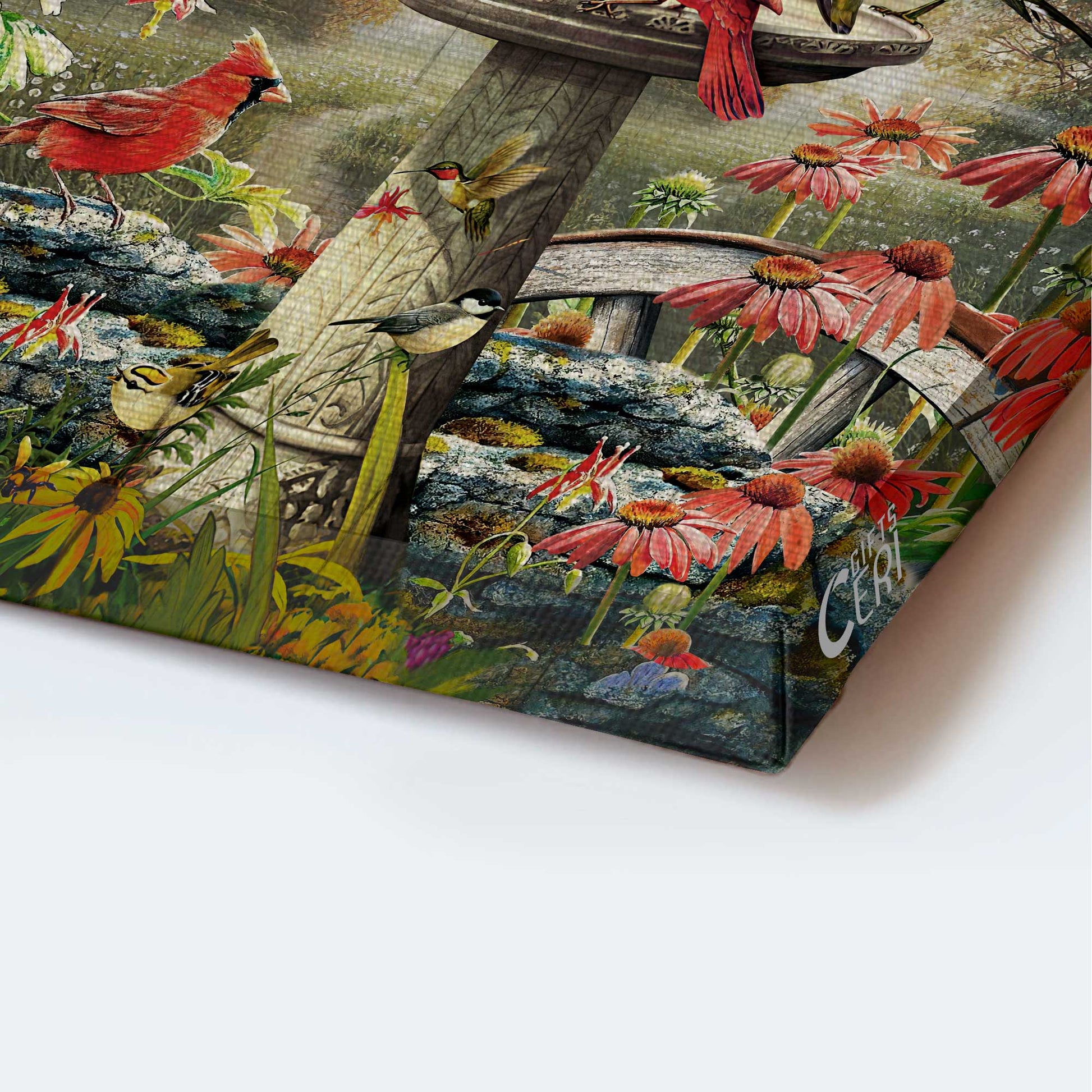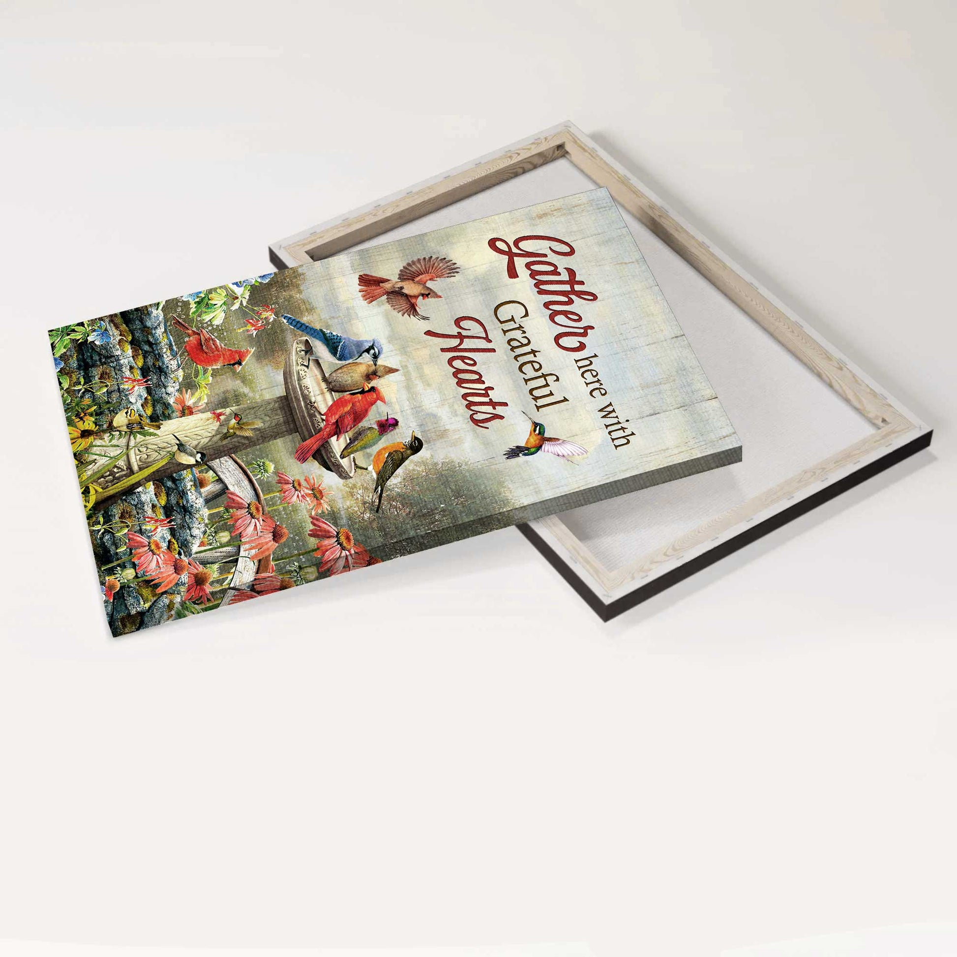 Jesus Portrait Canvas - Northern Cardinal, Hummingbirds, Rock water fountain Canvas - Gift for Christian - Gather here with grateful hearts Portrait Canvas Prints, Christian Wall Art is a beautiful canvas that may be displayed in any part of your home, including the living room, bedroom, kitchen and even the backyard.