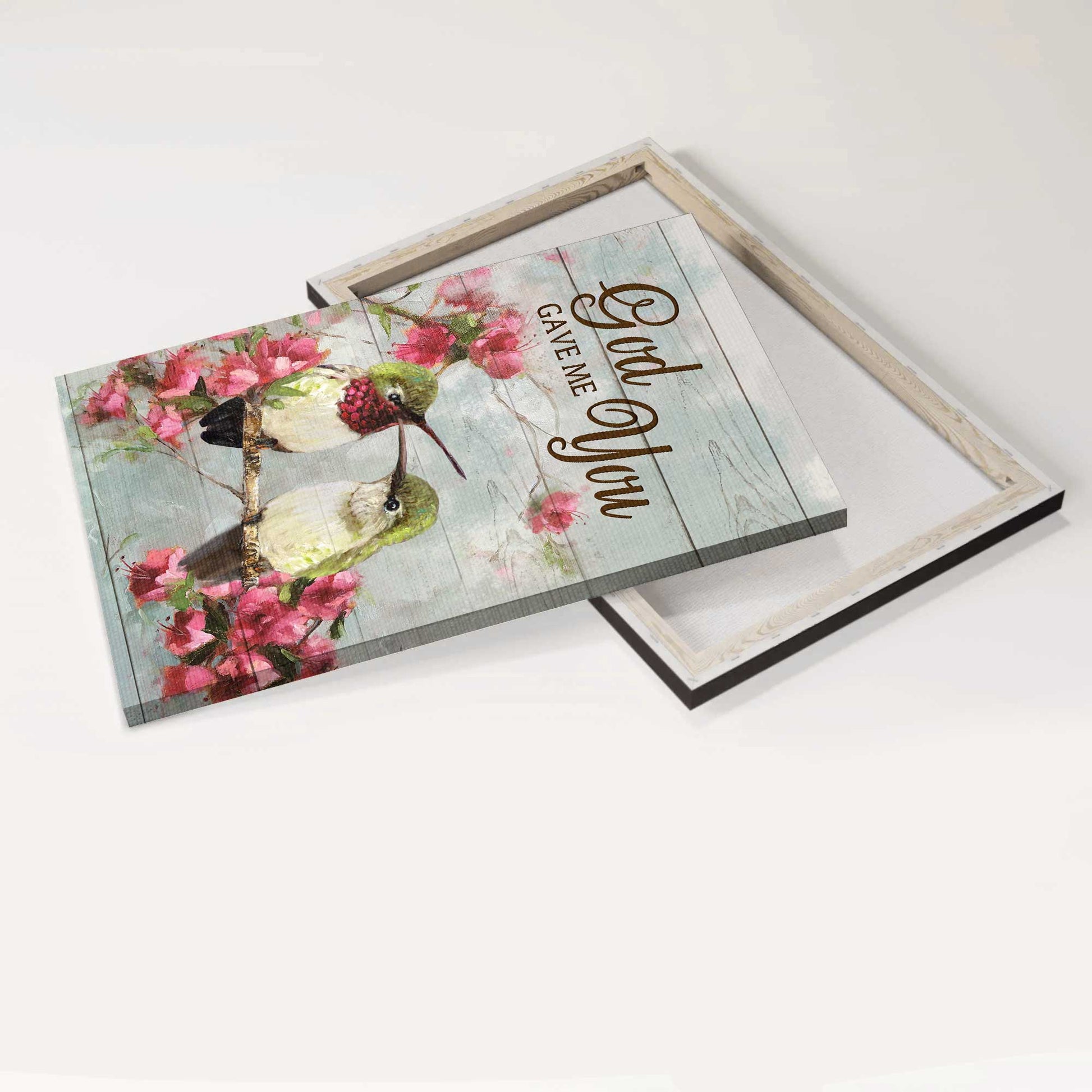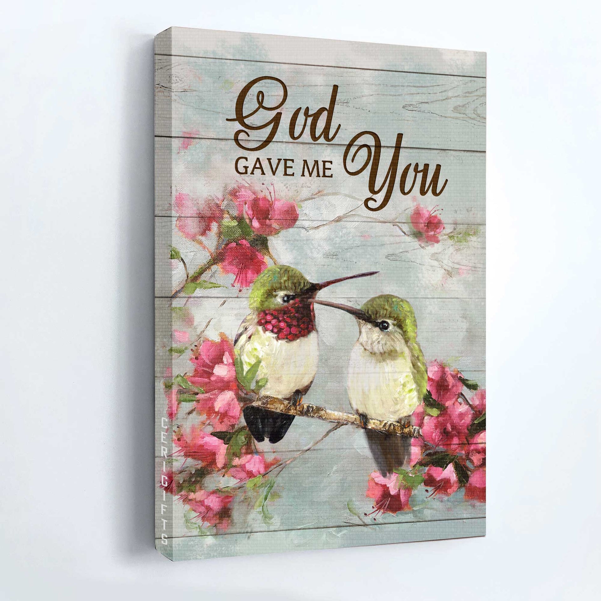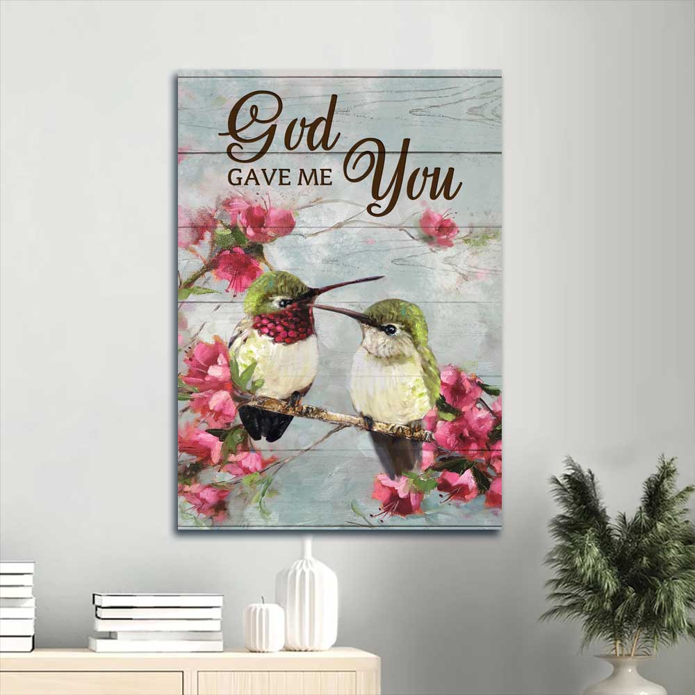 Jesus Portrait Canvas - Pink flower painting, Hummingbird drawing Portrait Canvas - Gift For Christian - God gave me you Portrait Canvas