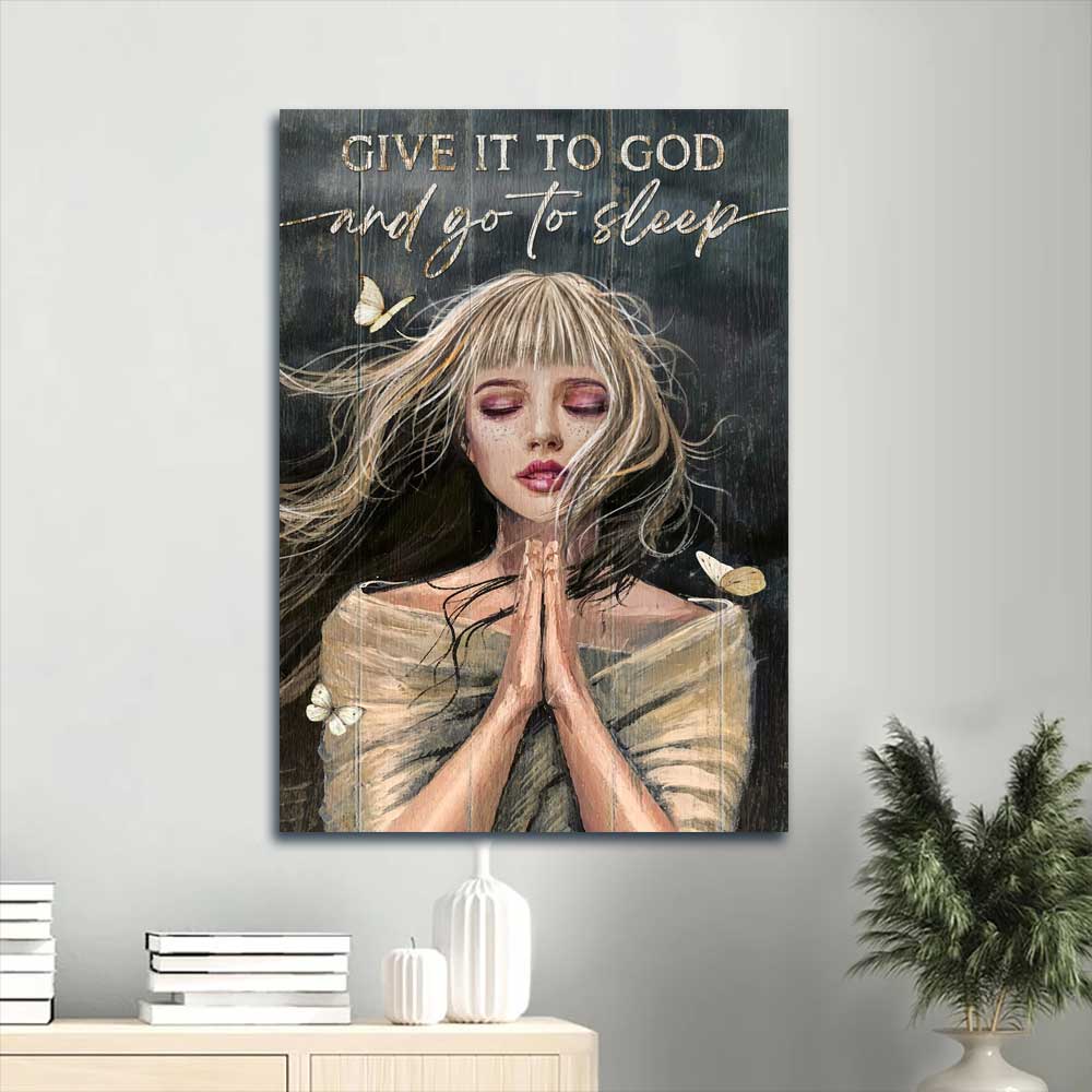 Jesus Portrait Canvas - Praying girl, Beautiful girl, Dark background Canvas - Gift for Christian - Give it to God Portrait Canvas Prints, Christian Wall Art