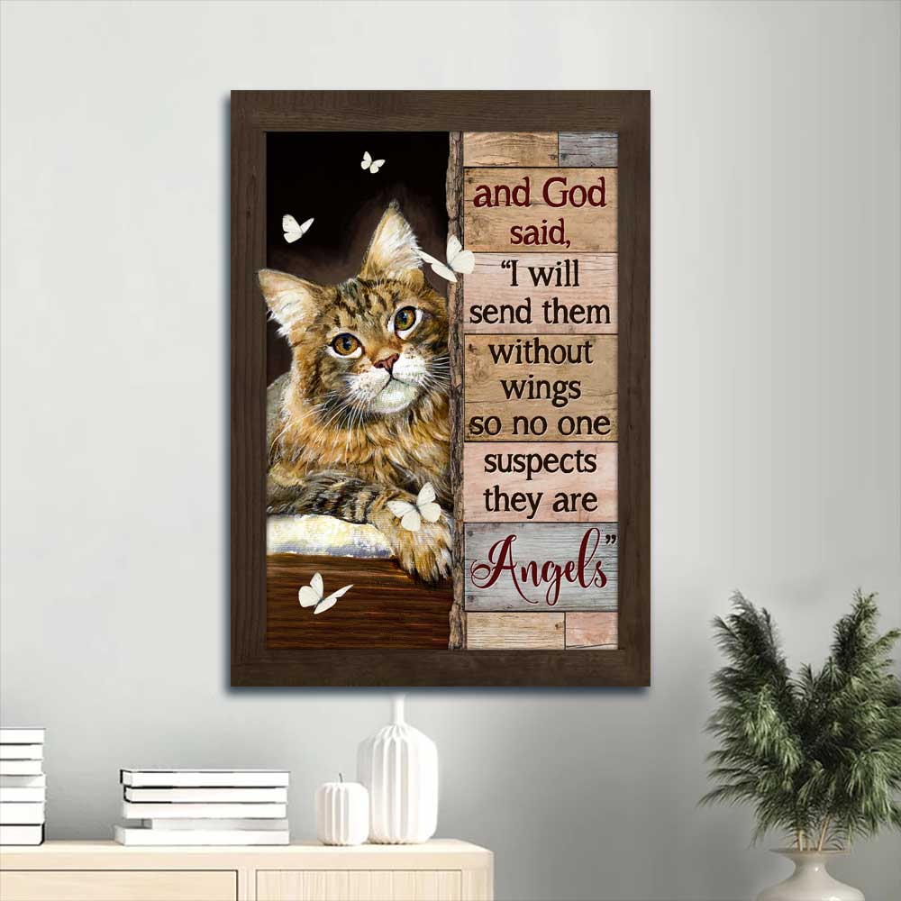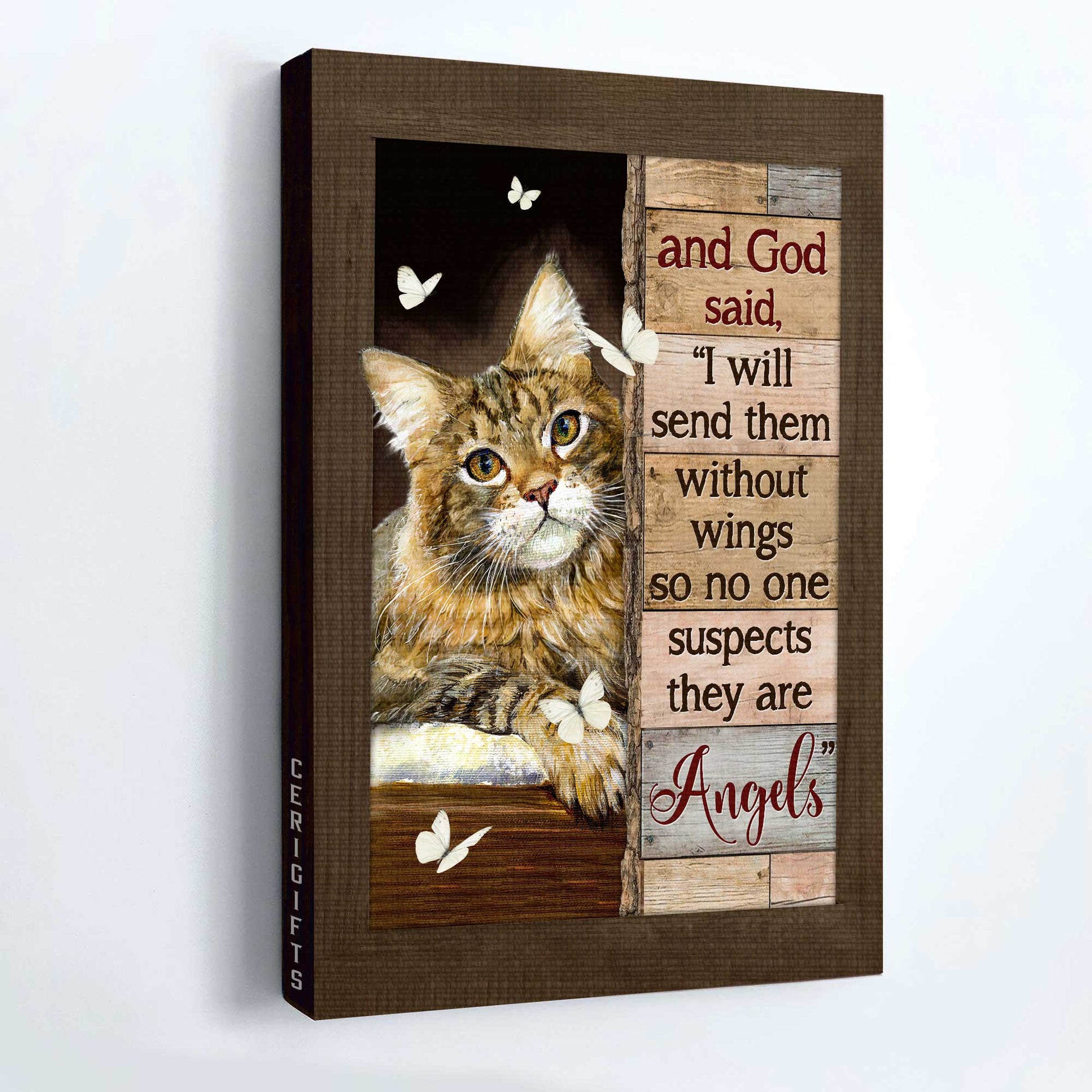 Jesus Portrait Canvas - Pretty cat drawing, White butterfly Canvas - Gift for Christian - I will send them without wings Portrait Canvas Prints, Christian Wall Art