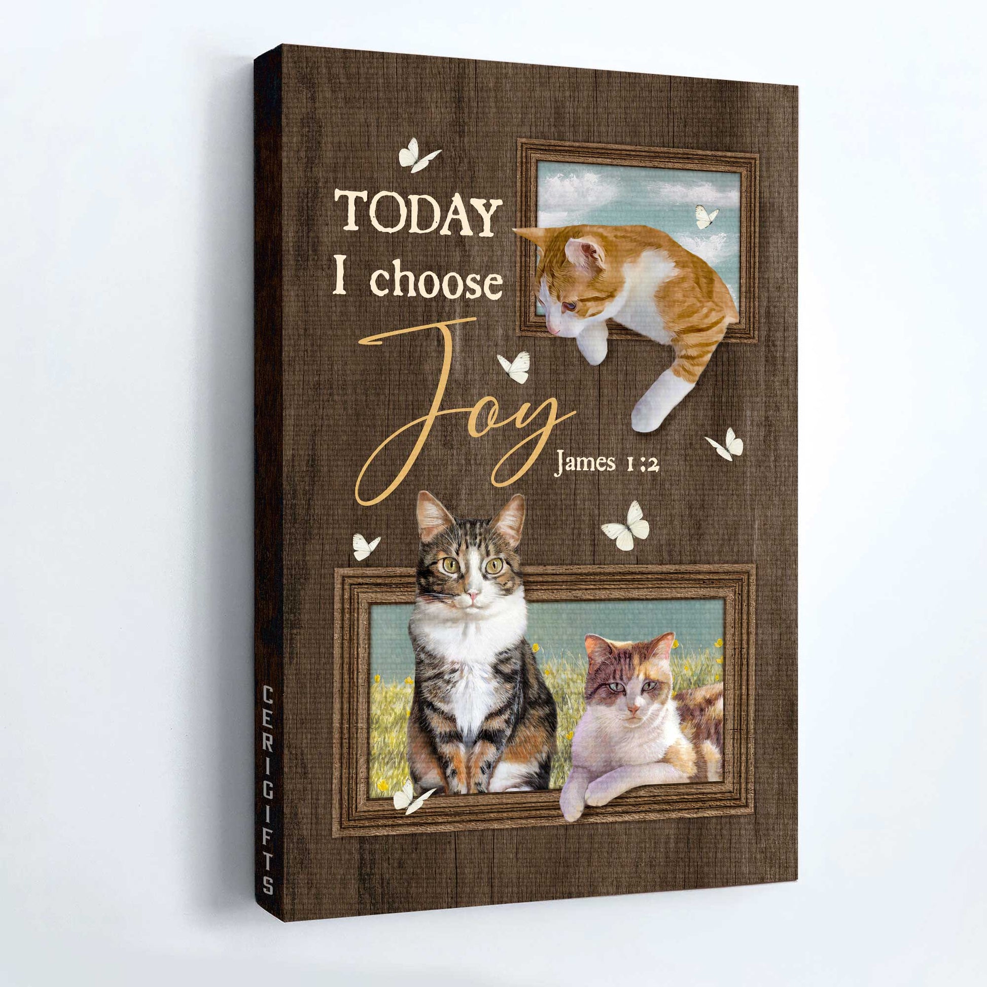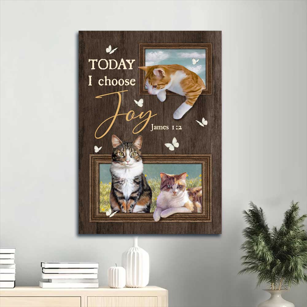 Jesus Portrait Canvas - Pretty cat, Yellow daisy field, White butterfly Canvas - Gift for Christian - Today I choose joy Portrait Canvas matches well with a variety of wall decor styles and rooms.