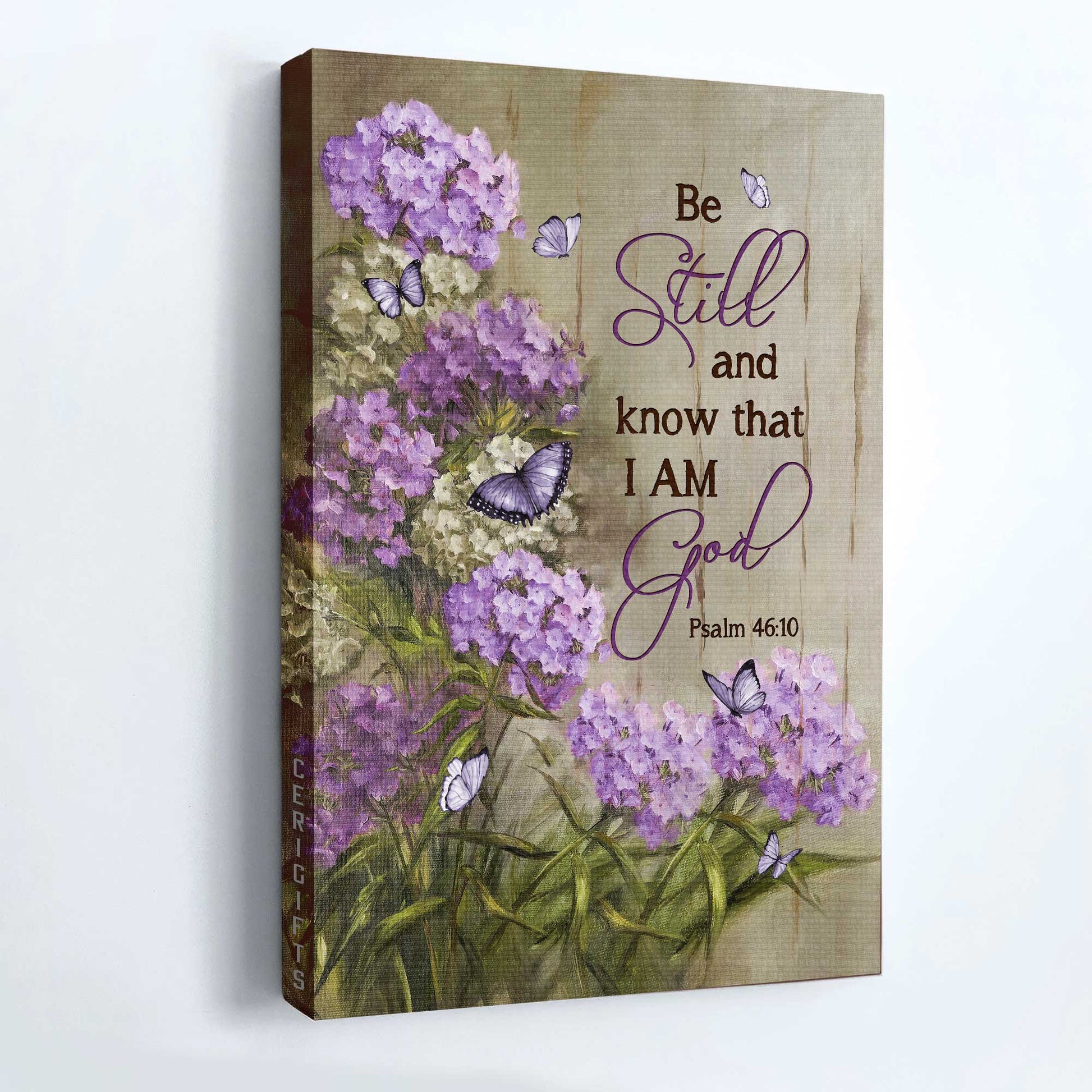 Jesus Portrait Canvas- Pretty purple hydrangea, Butterfly- Gift for Christian- Be still and know that I am God - Canvas Prints, Christian Wall Art matches well with a variety of wall decor styles and rooms.