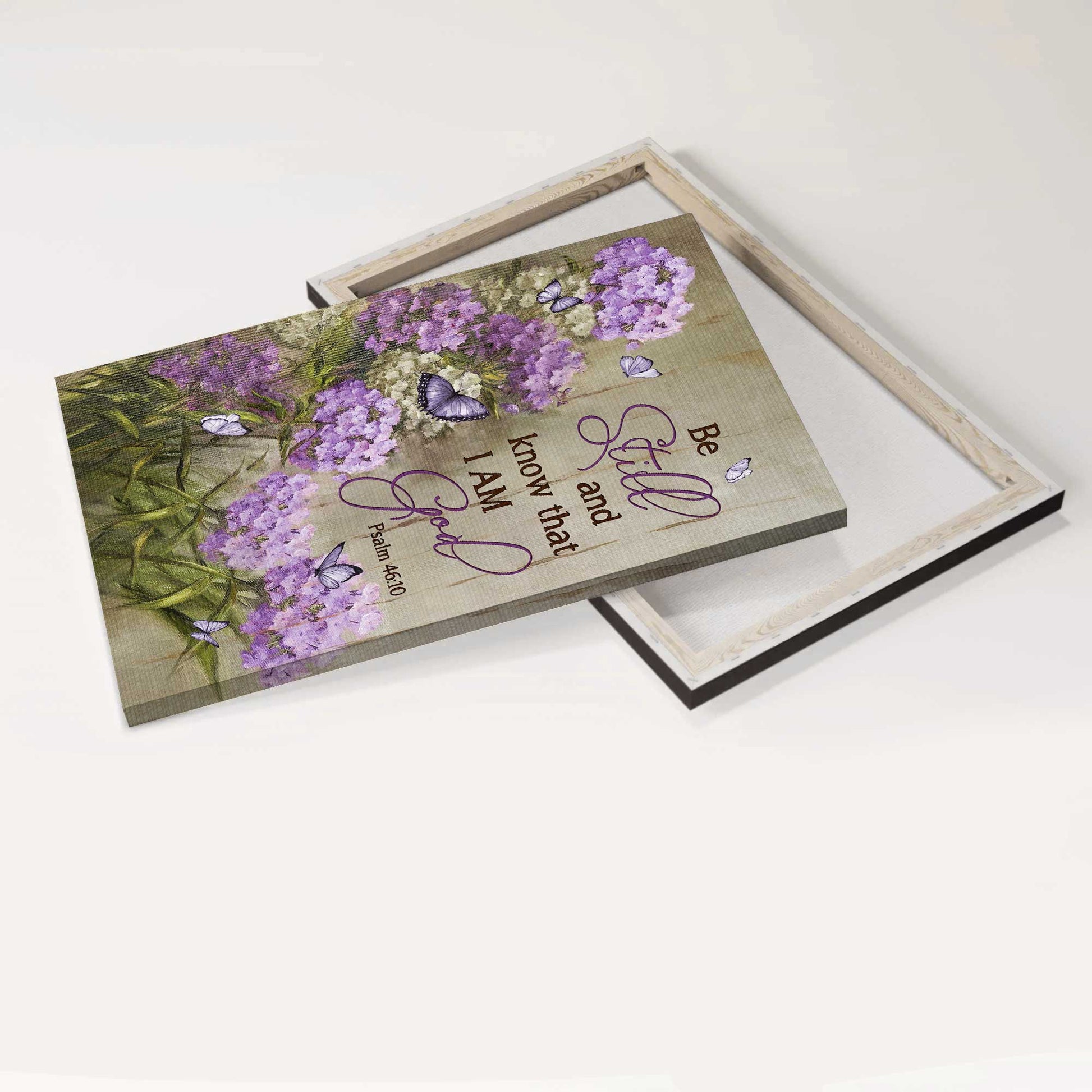Jesus Portrait Canvas- Pretty purple hydrangea, Butterfly- Gift for Christian- Be still and know that I am God - Canvas Prints, Christian Wall Art
