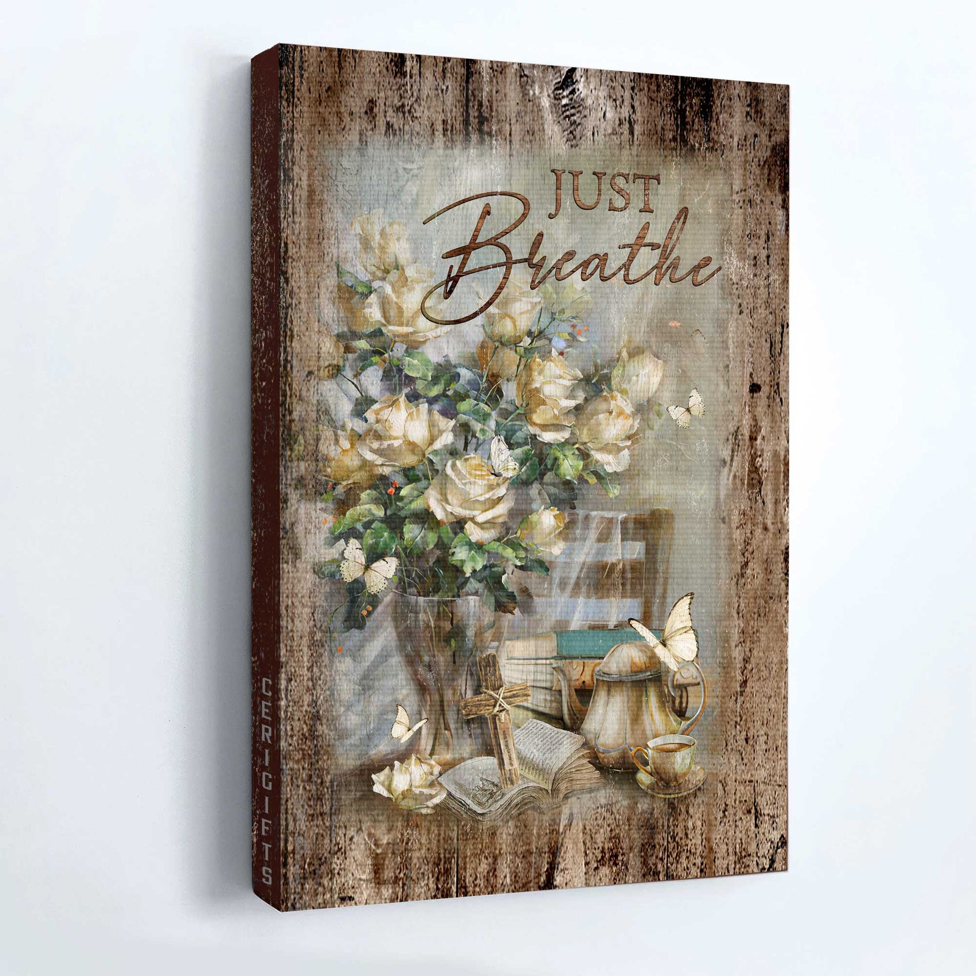 Jesus Portrait Canvas- Pretty rose vase, Antique painting, Tea pot, Just breathe canvas- Gift for Christian- Portrait Canvas Prints, Christian Wall Art