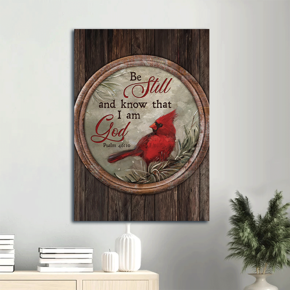 Jesus Portrait Canvas- Red cardinal, Circle frame, Winter forest- Gift for Christian- Be still and know that I am God - Portrait Canvas Prints, Christian Wall Art