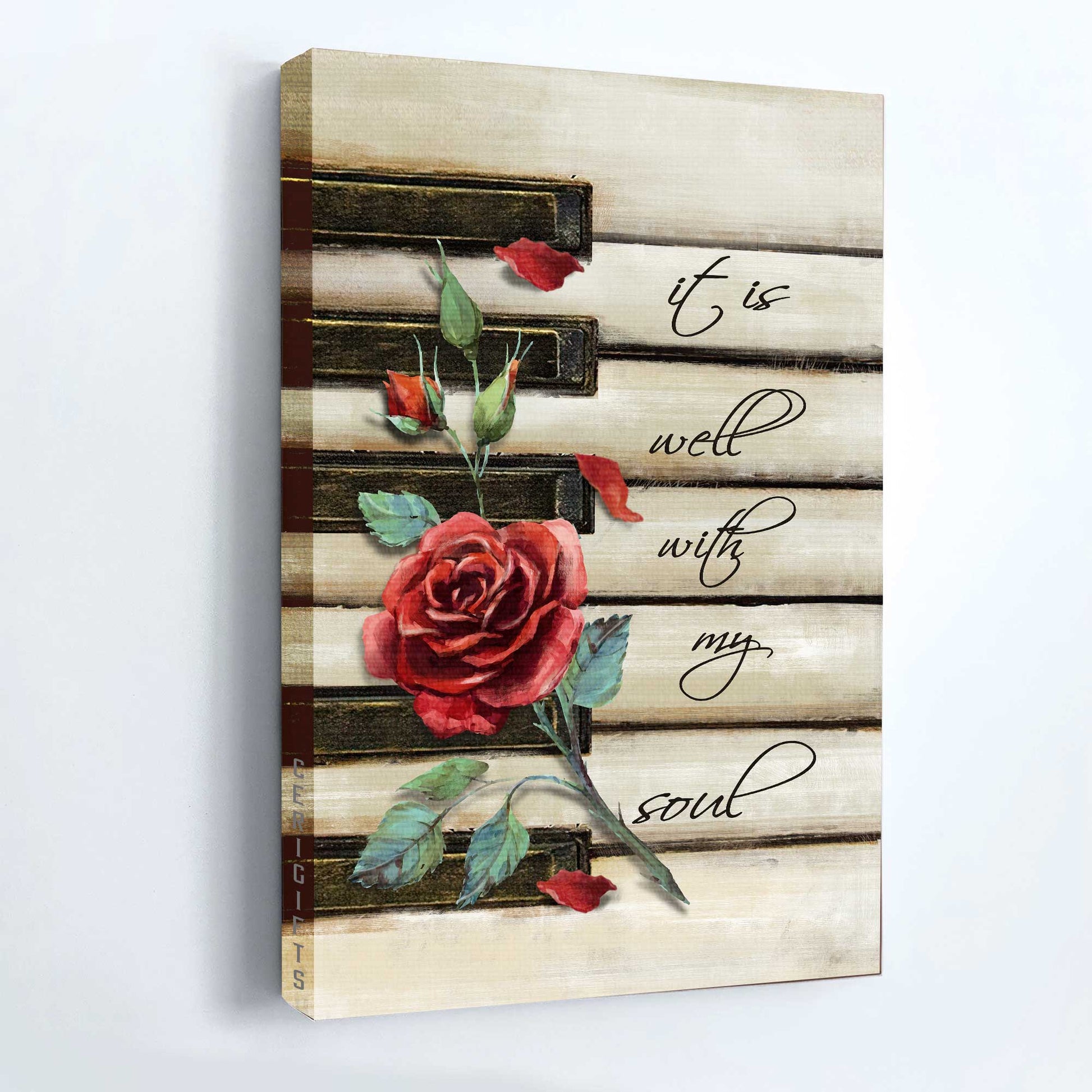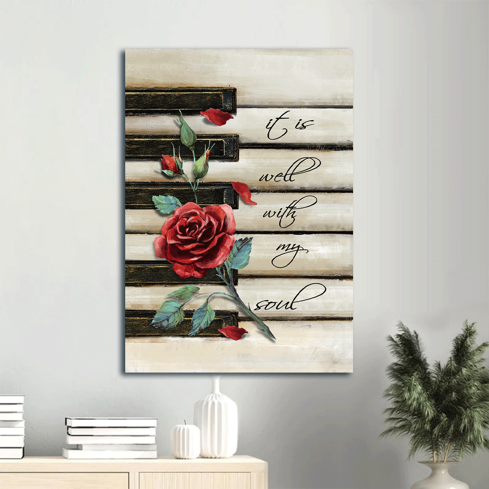 Jesus Portrait Canvas- Red rose painting, Piano drawing- Gift for Christian- It is well with my soul - Portrait Canvas Prints, Christian Wall Art