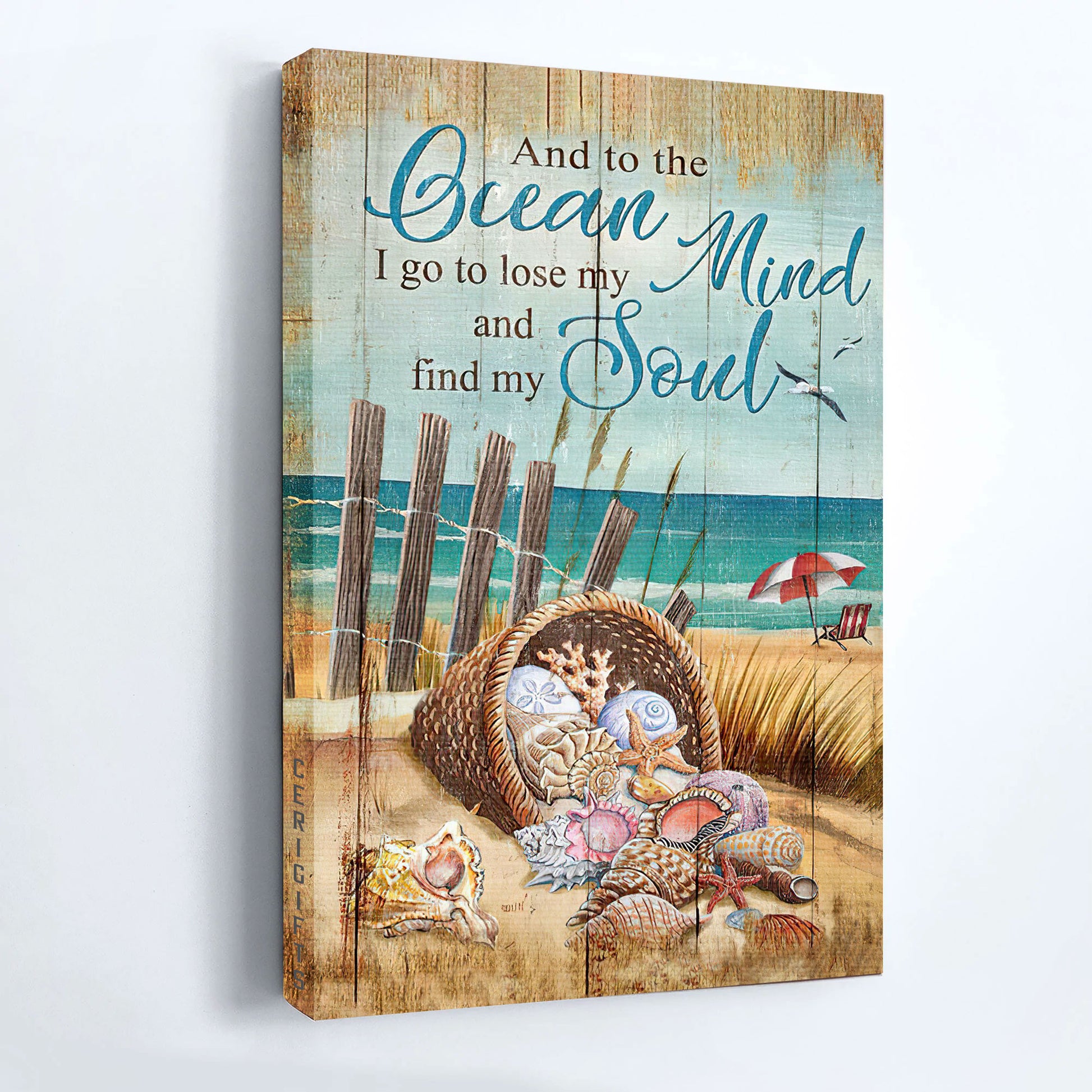 Jesus Portrait Canvas- Seashell Basket, Beach- Gift for Christian- And to the ocean I go to lose my mind and find my soul - Portrait Canvas Prints, Wall Art