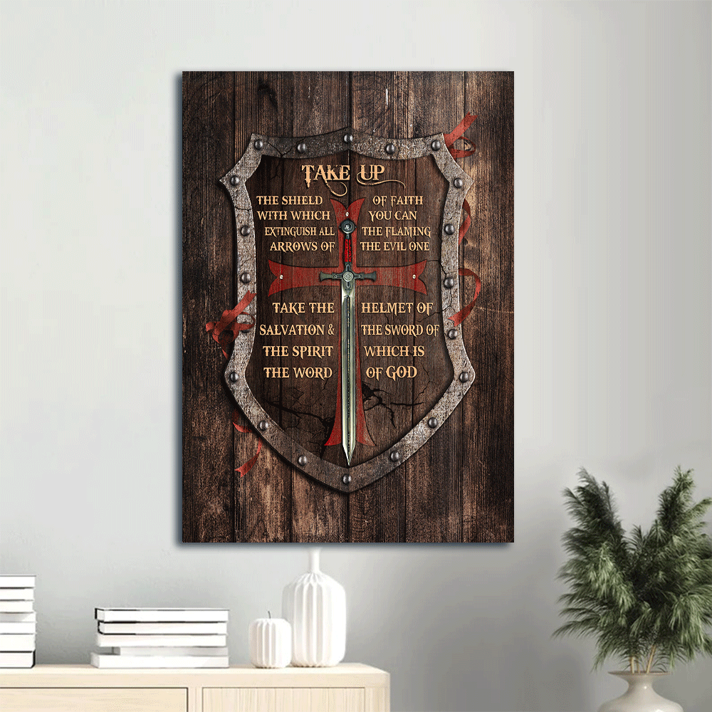 Jesus Portrait Canvas- Shield drawing, The warrior- Gift for Christian- Take up the shield of faith - Portrait Canvas Prints, Christian Wall Art