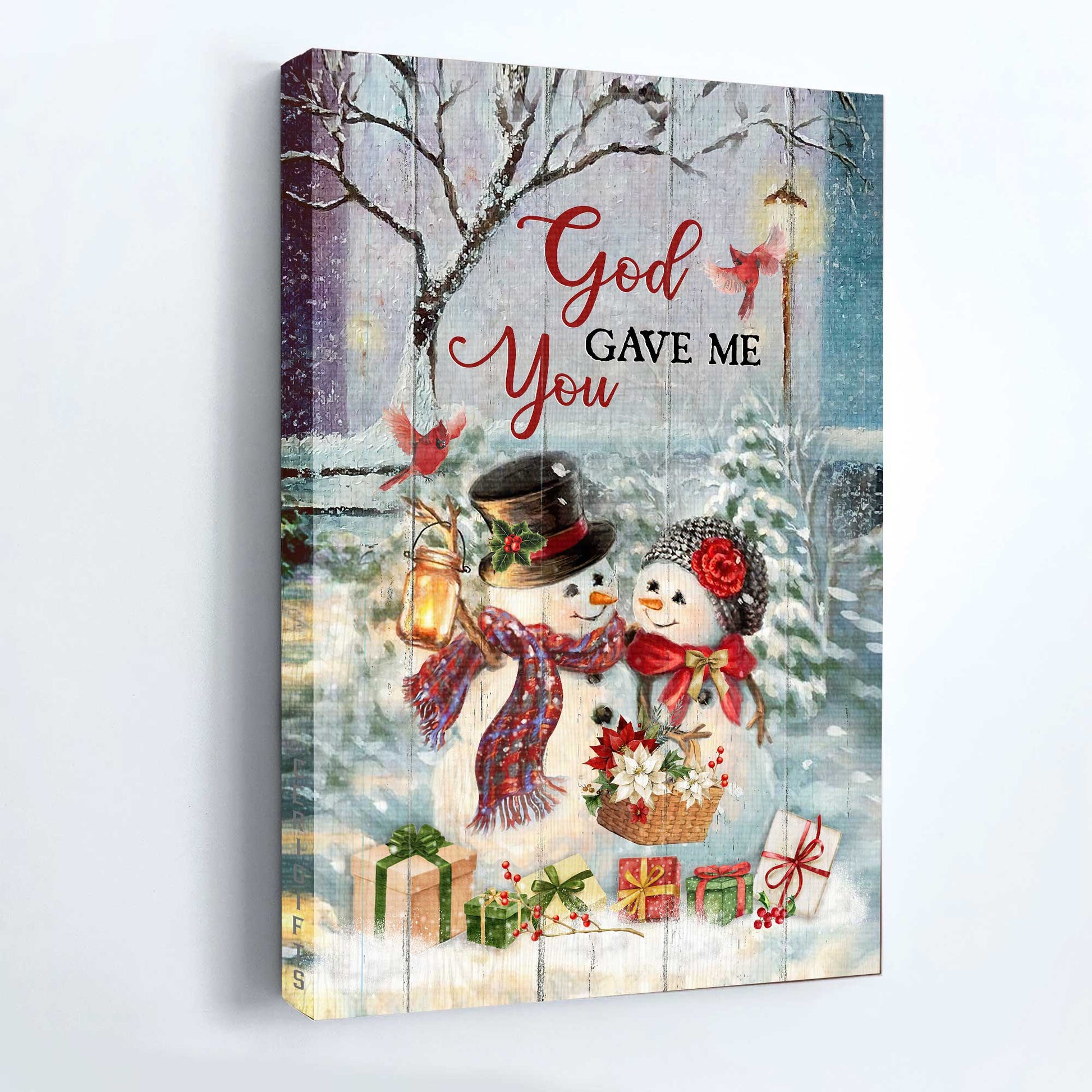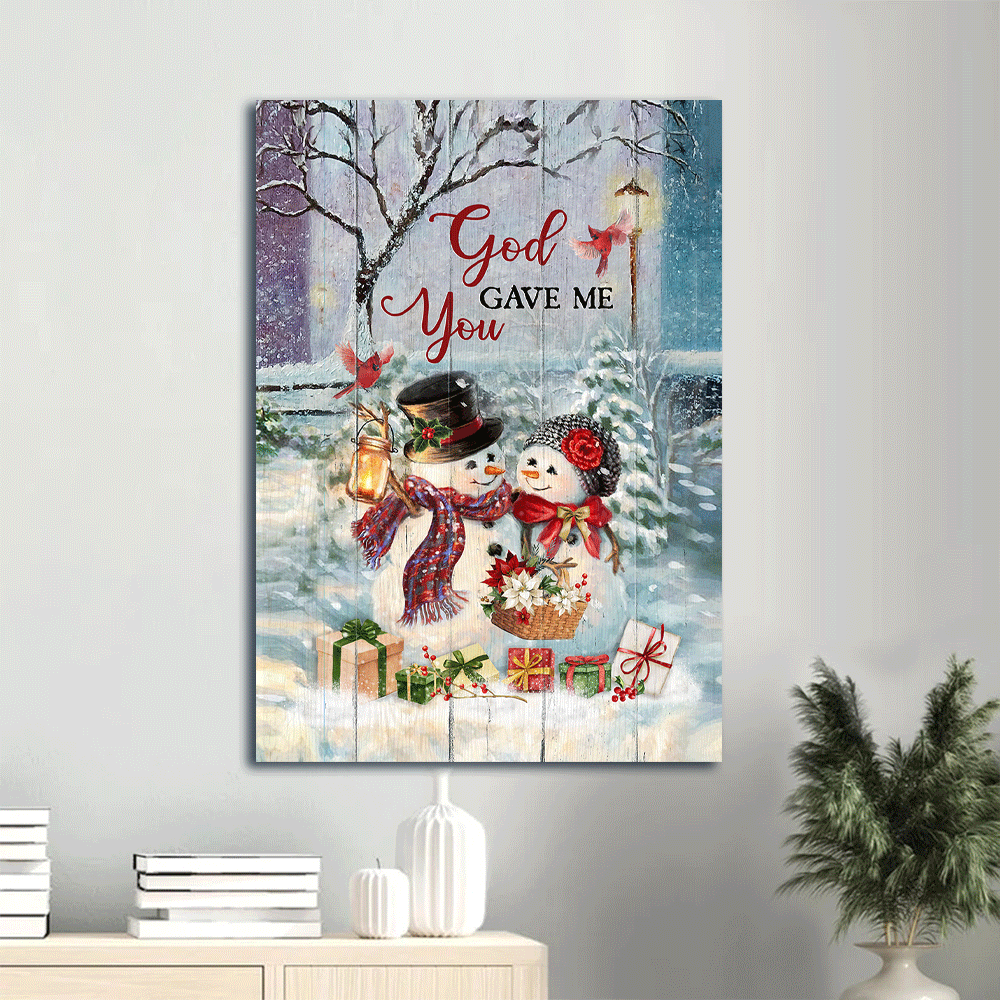 Jesus Portrait Canvas- Snowman couple, Winter Park- Gift for Christian- God gave me you - Portrait Canvas Prints, Wall Art