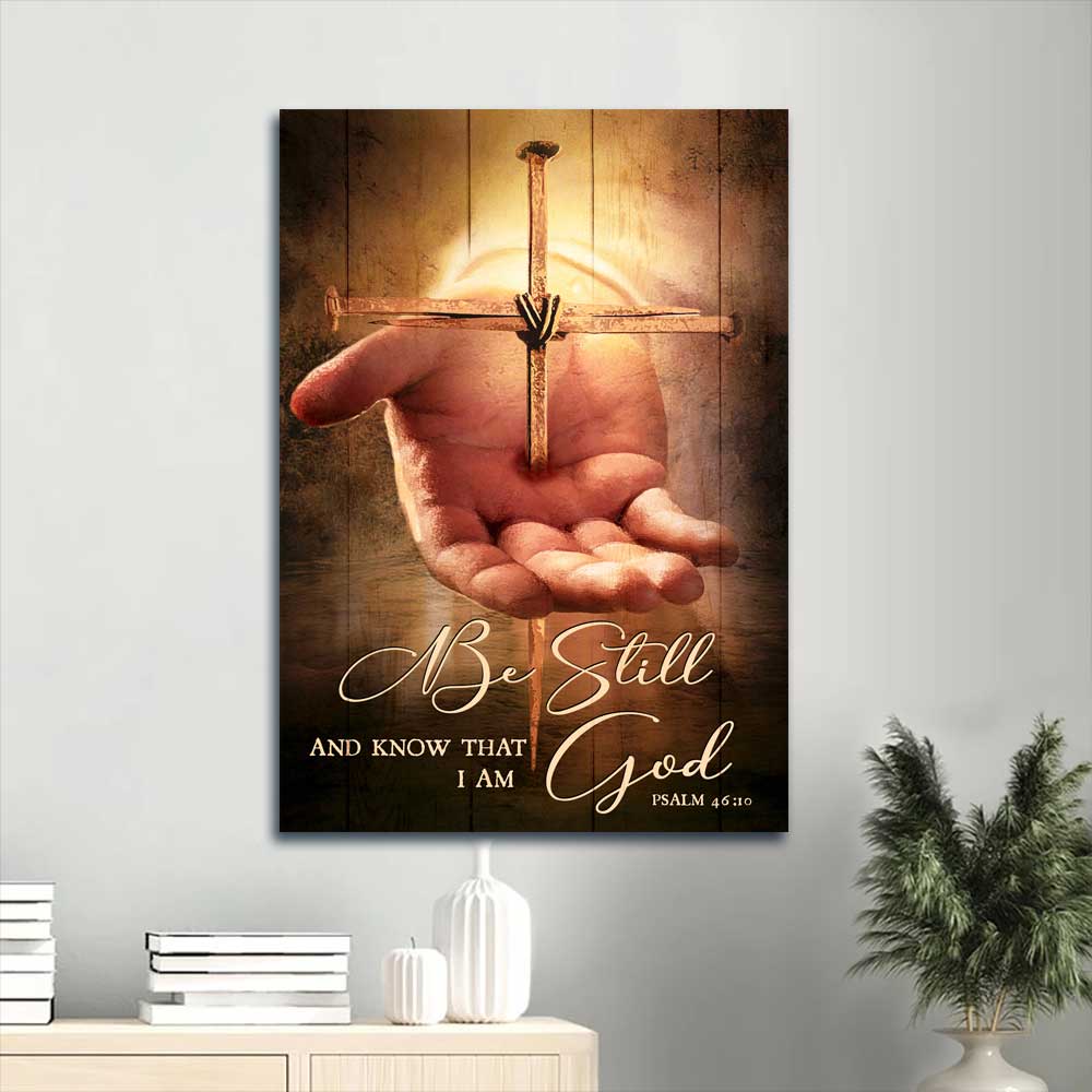 Jesus Portrait Canvas - Stunning Cross, Jesus's Hand Painting Canvas - Gift For Christian - Be Still And Know That I Am God Canvas
