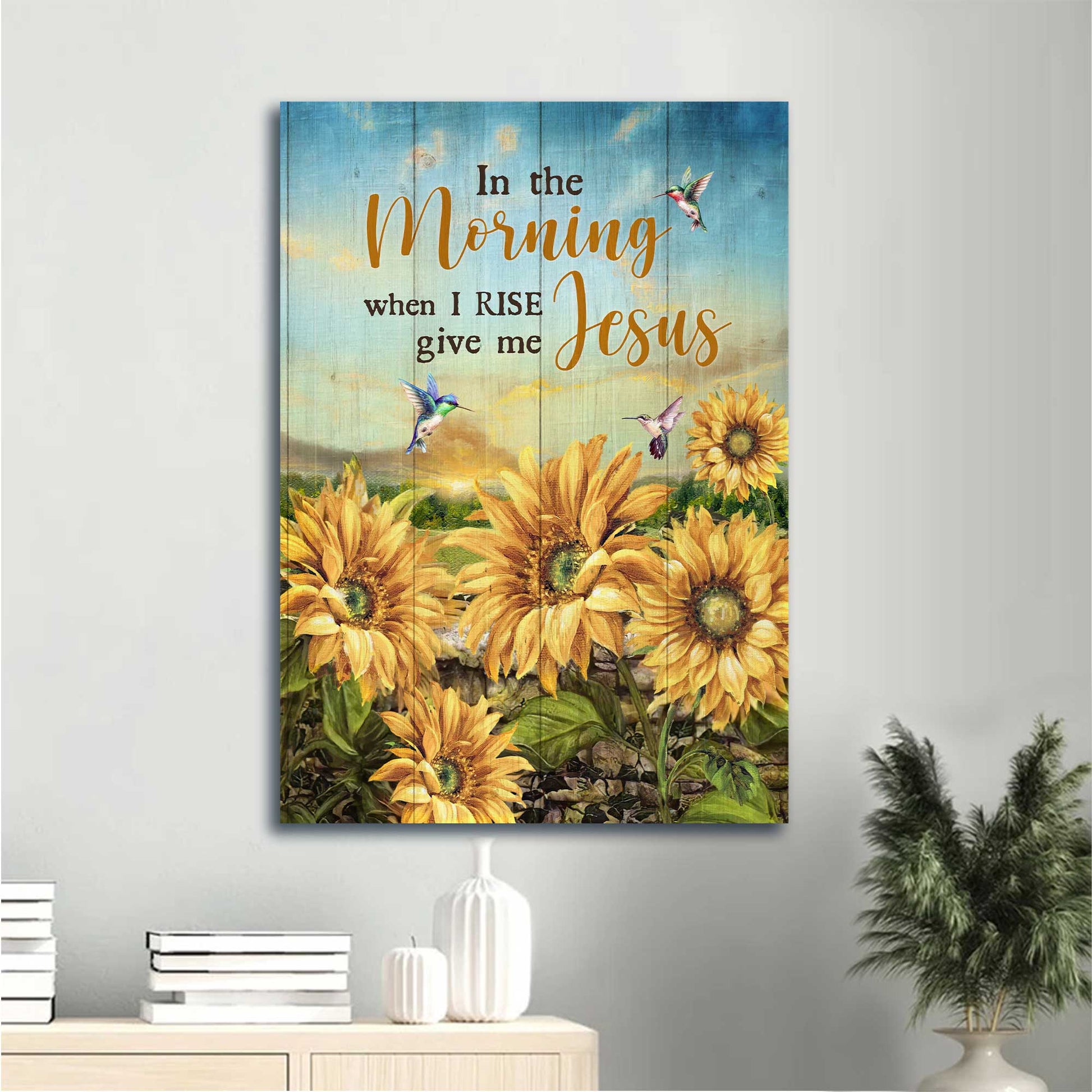 Jesus Portrait Canvas - Sunflower Field, Hummingbird, Beautiful Sky Canvas - Gift For Christian - Give Me Jesus Canvas Prints, Christian Wall Art will suit for any room in your house from living room, bedroom, kitchen to entryway.