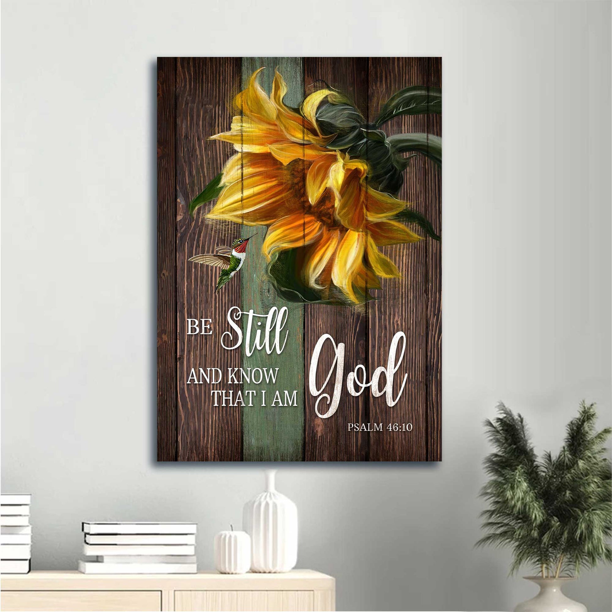 Jesus Portrait Canvas - Sunflower, Hummingbird, Still Painting Canvas - Gift For Christian - Be Still And Know That I Am God Canvas