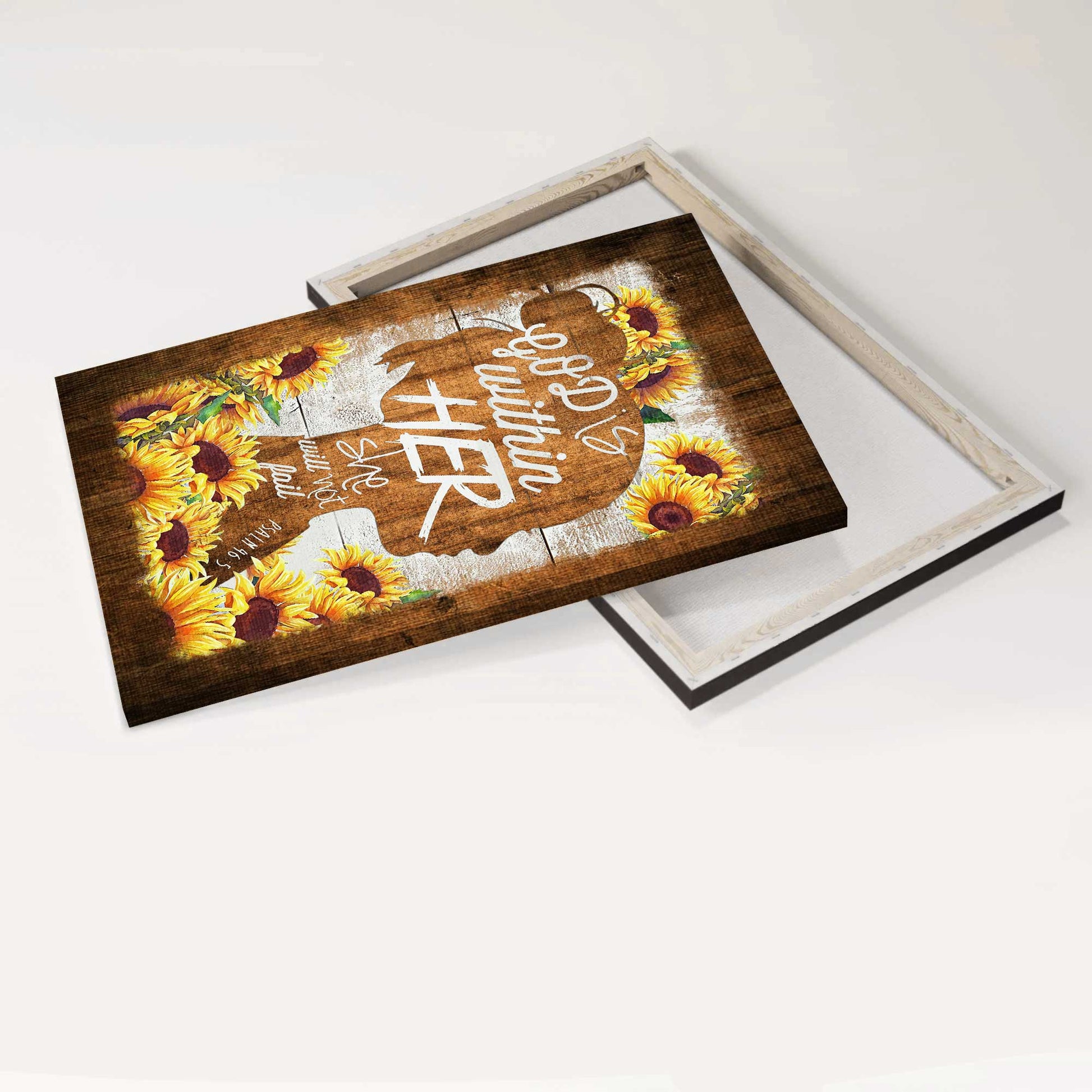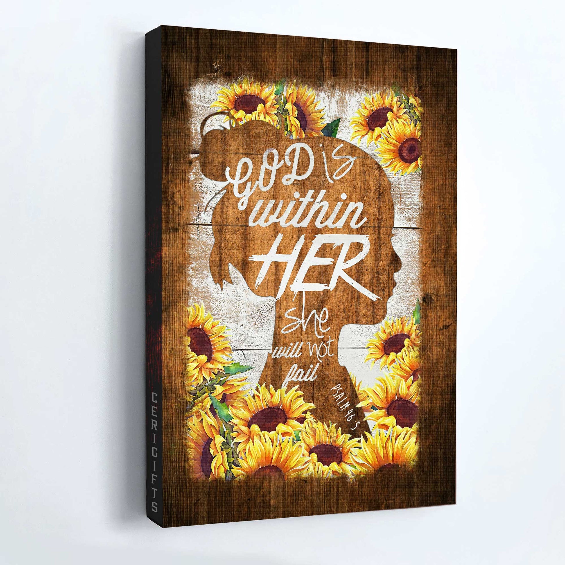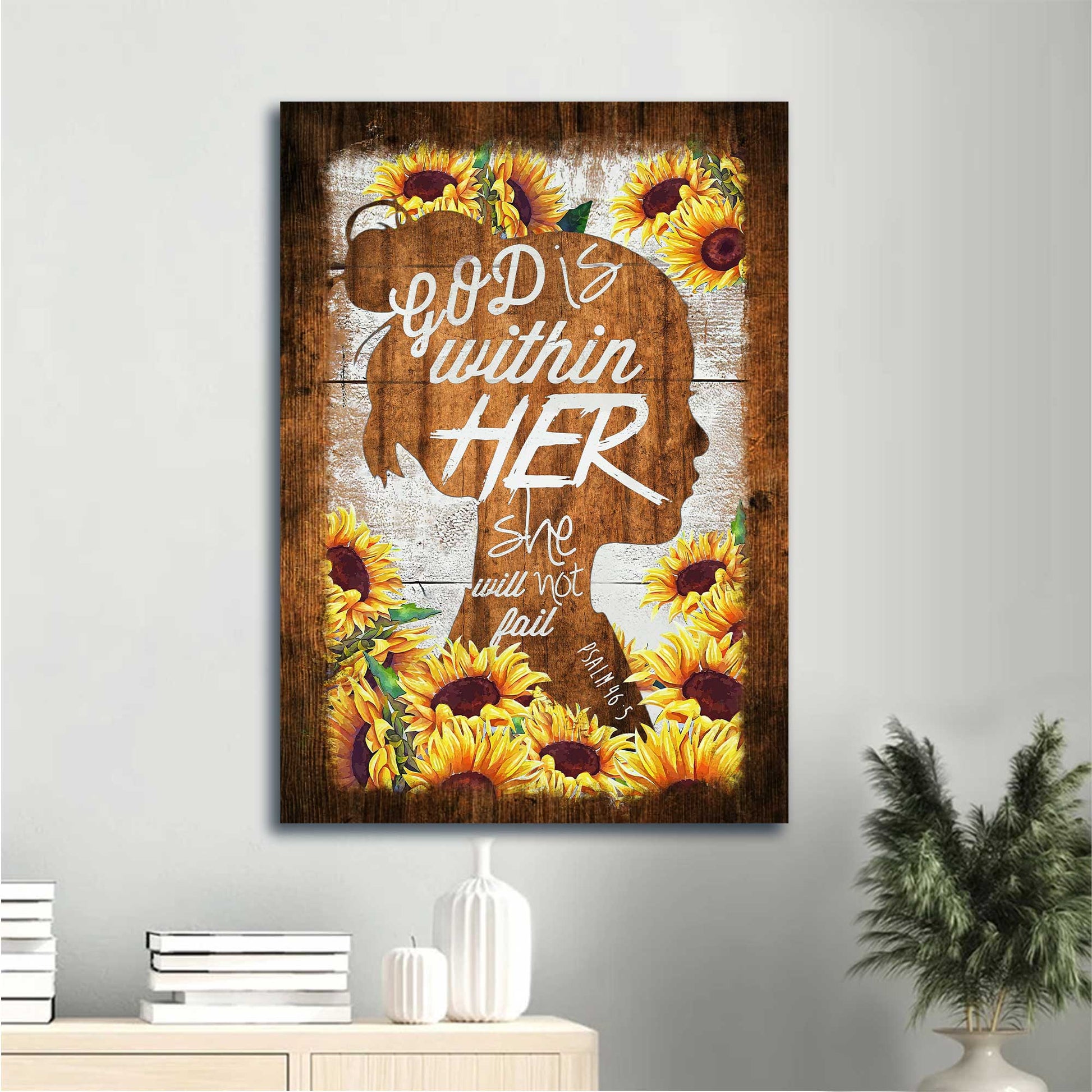 Jesus Portrait Canvas - Sunflower, Shadow Girl Canvas - Gift For Christian - God Is Within Her, She Will Not Fail Canvas