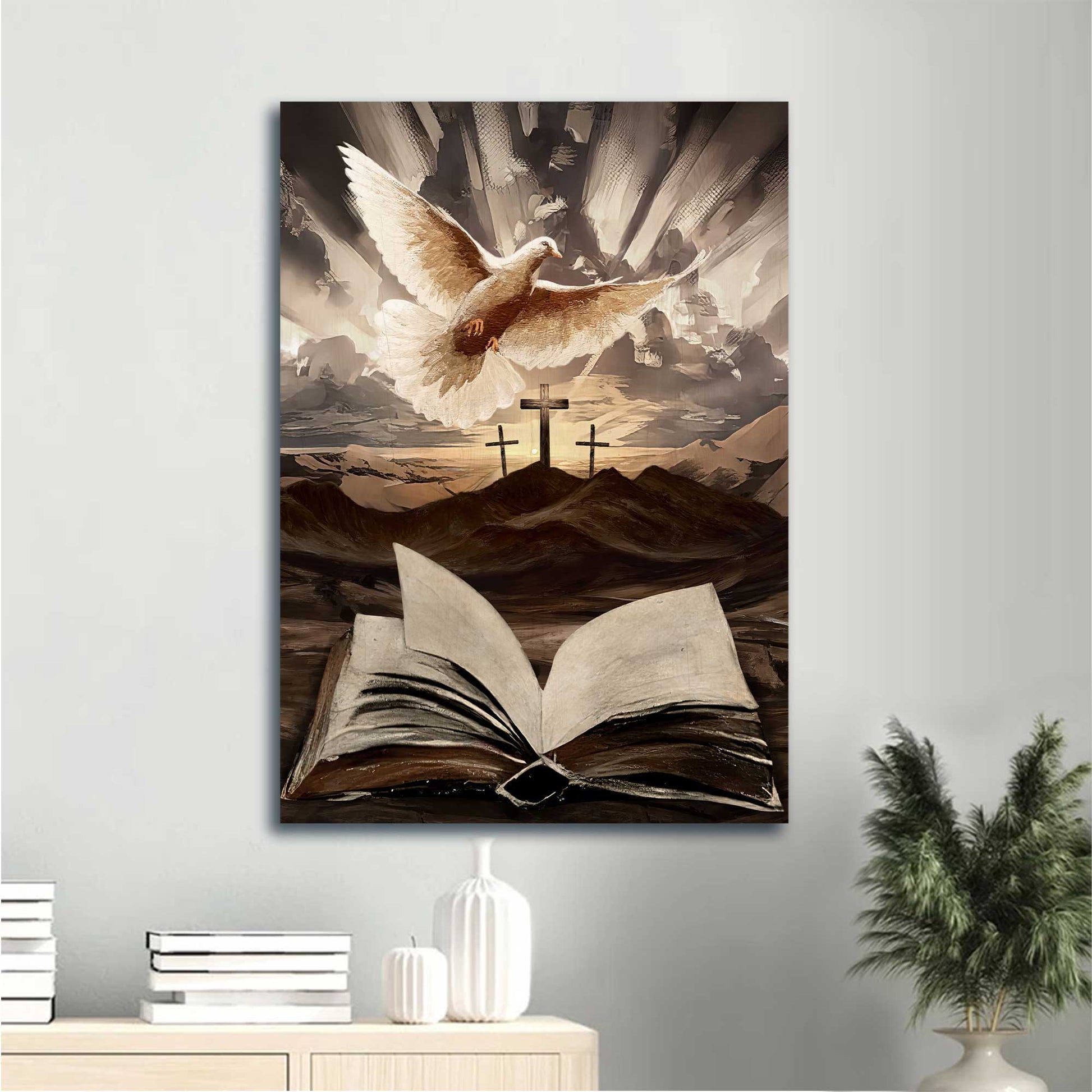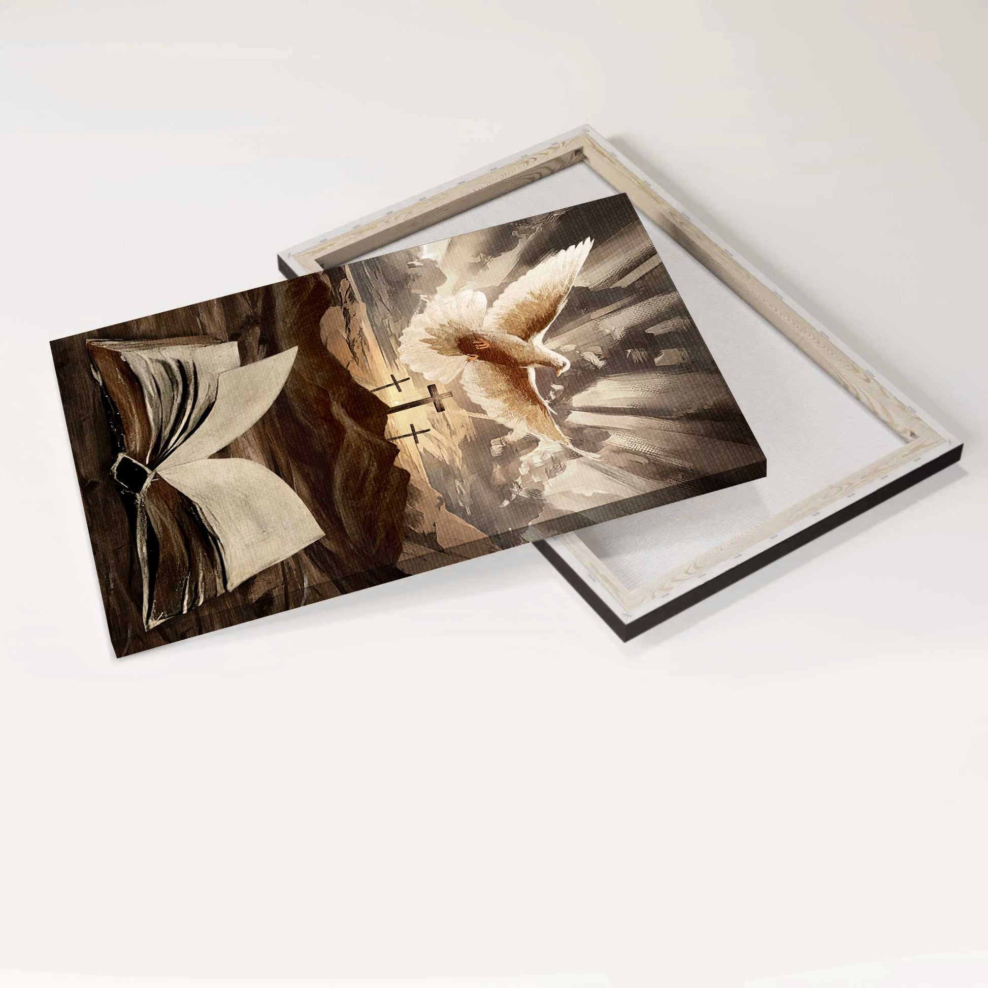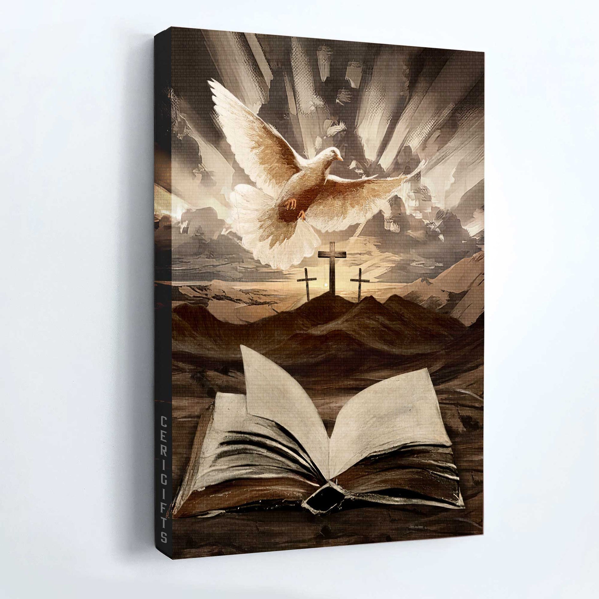 Jesus Portrait Canvas - The Bible, Dove Painting, Old Rugged Crosses, Sunrise On Mountains Canvas - Gift For Christian