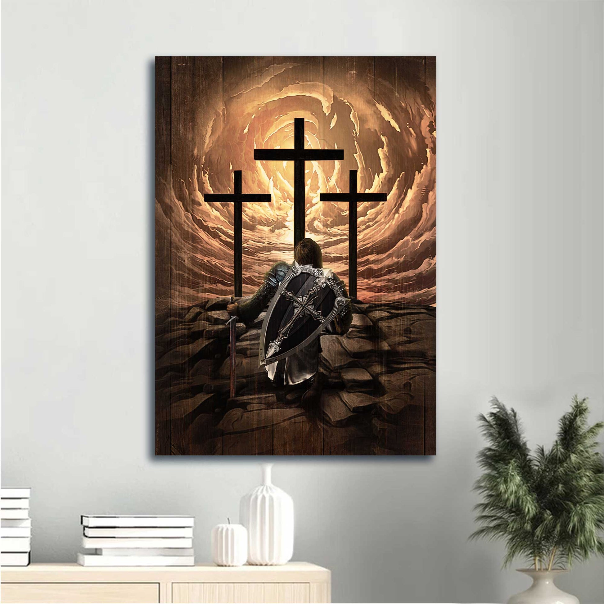 Jesus Portrait Canvas - The Old Rugged Cross, Warrior Of God, Knight Drawing, Under The Command Of The Lord Canvas - Gift For Christian