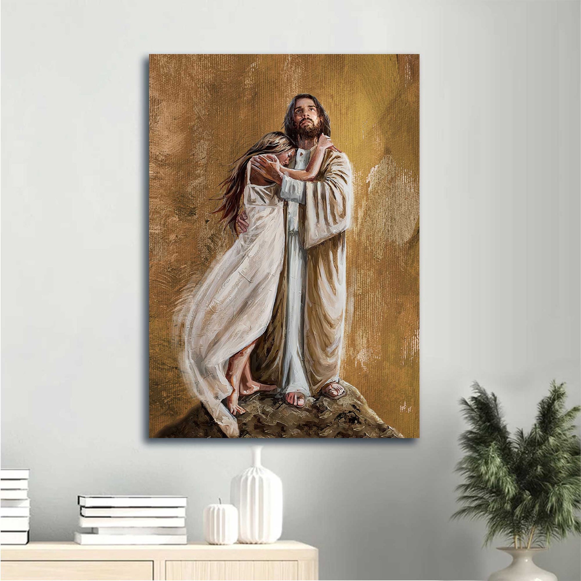 The image of the savior Jesus hug in the arms of his love Jesus Portrait Canvas - The Savior, Jesus Hug, Jesus Painting, In The Arms Of His Love - Gift For Christian Canvas Prints, Wall Art will definitely be a meaningful gift not only for your friend but also for your lover and your family. This wonderful canvas will be suitable for any room in your house from the kitchen, bedroom, and living room to outside space.