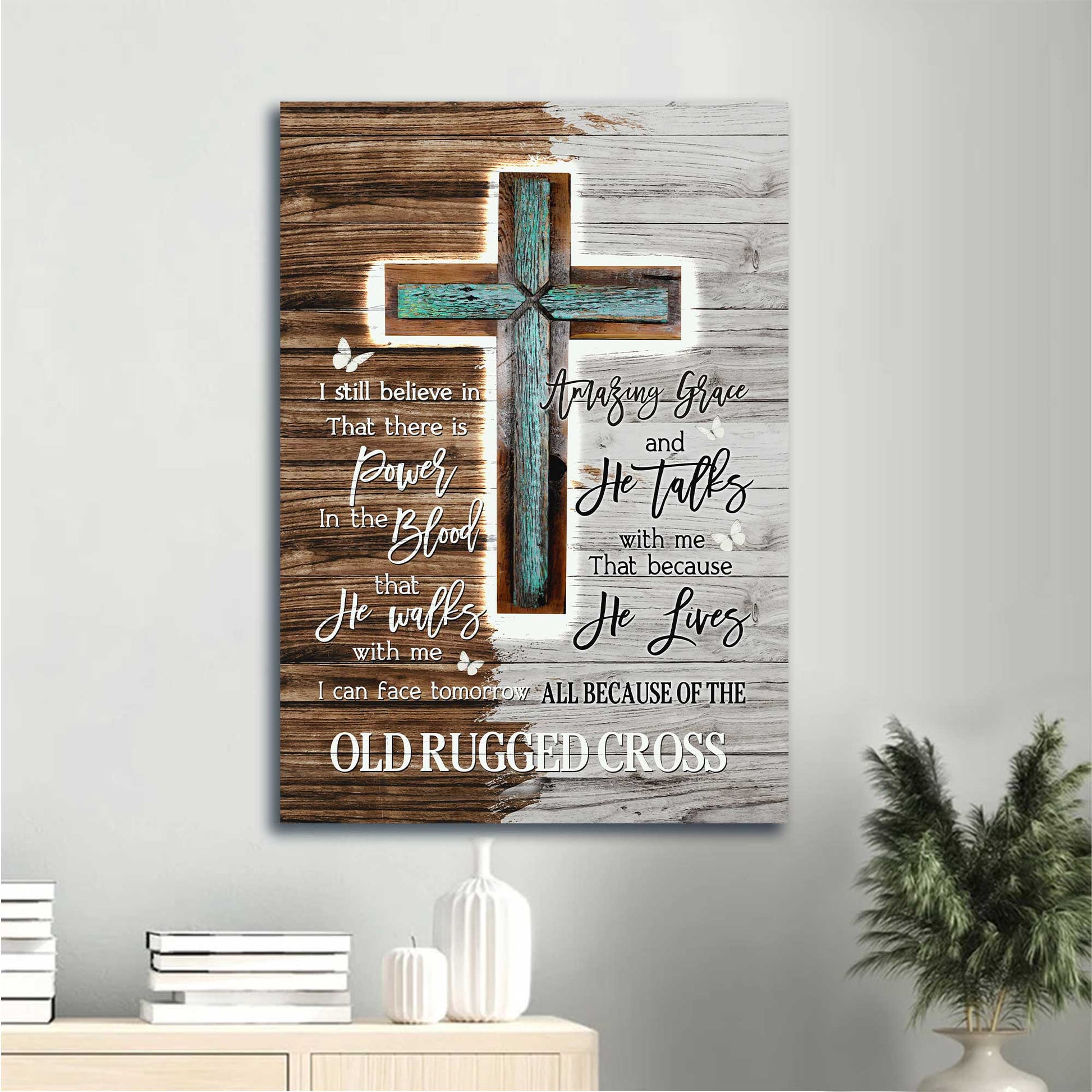 Jesus Portrait Canvas - The Wooden Cross, Beautiful Cross Canvas - Gift For Christian - The Old Rugged Cross