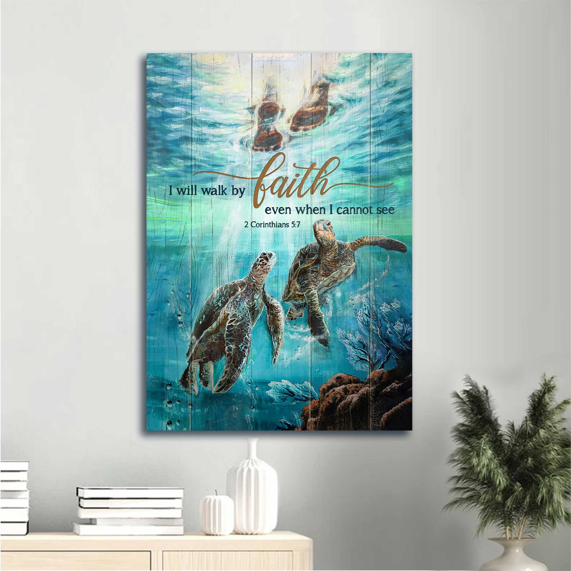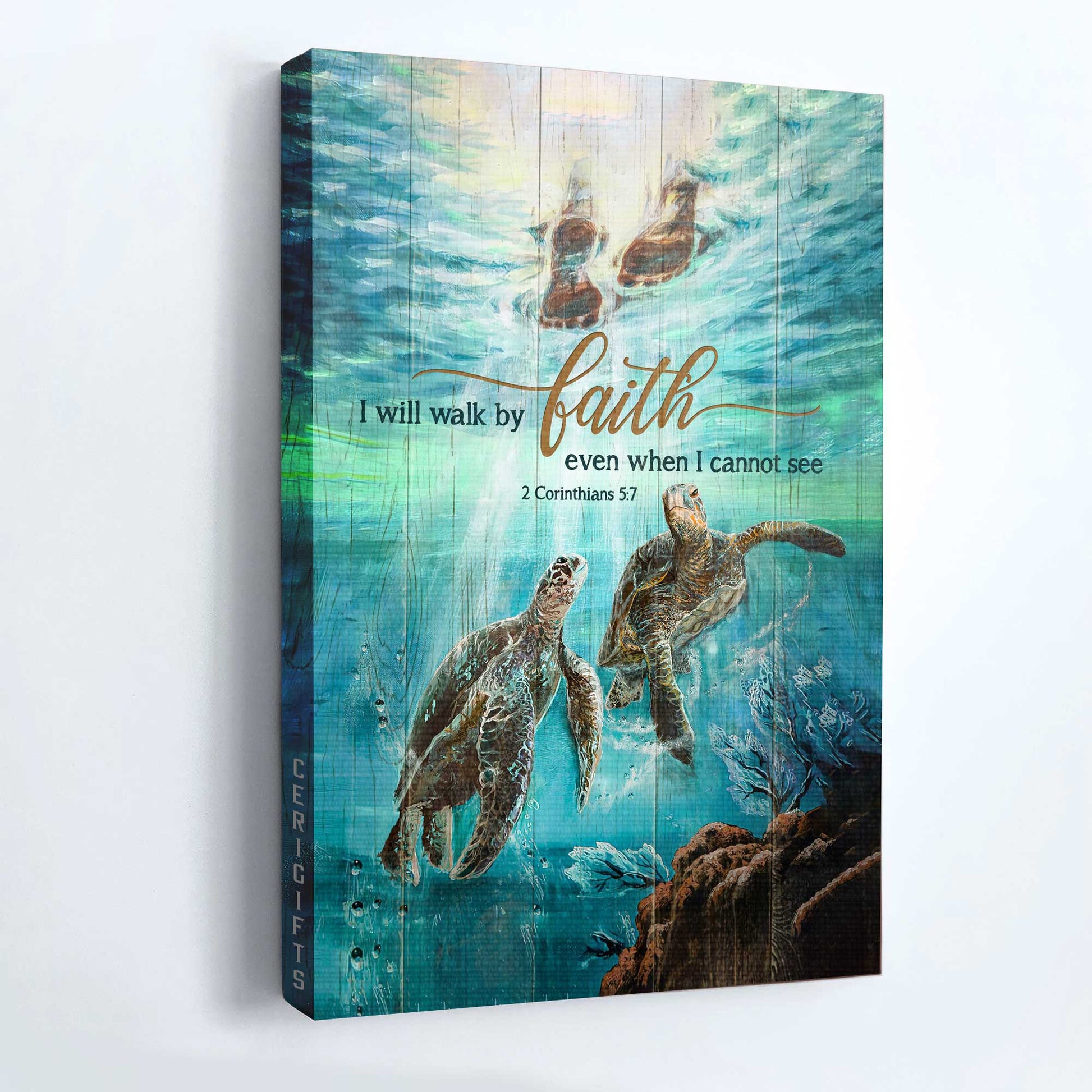 Jesus Portrait Canvas - Turtle Couple, Under The Sea Canvas - Gift For Christian - I Will Walk By Faith Even When I Cannot See Canvas Prints, Christian Wall Art can be hung on the wall of your kitchen, living room, bedroom, bathroom and even outdoor space.