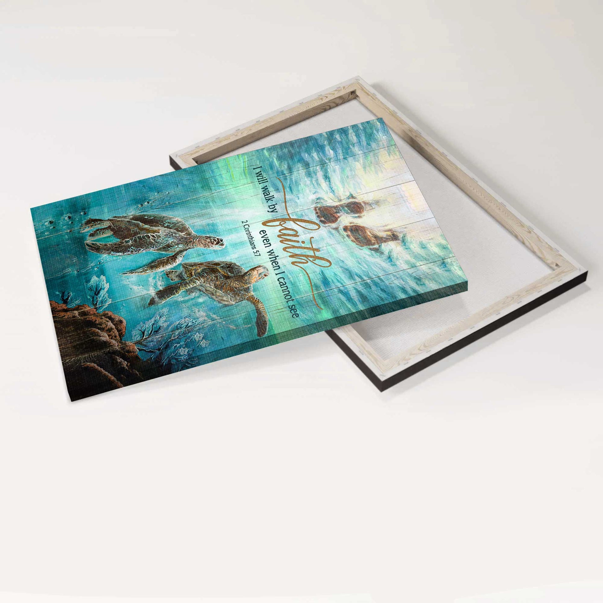 Jesus Portrait Canvas - Turtle Couple, Under The Sea Canvas - Gift For Christian - I Will Walk By Faith Even When I Cannot See Canvas