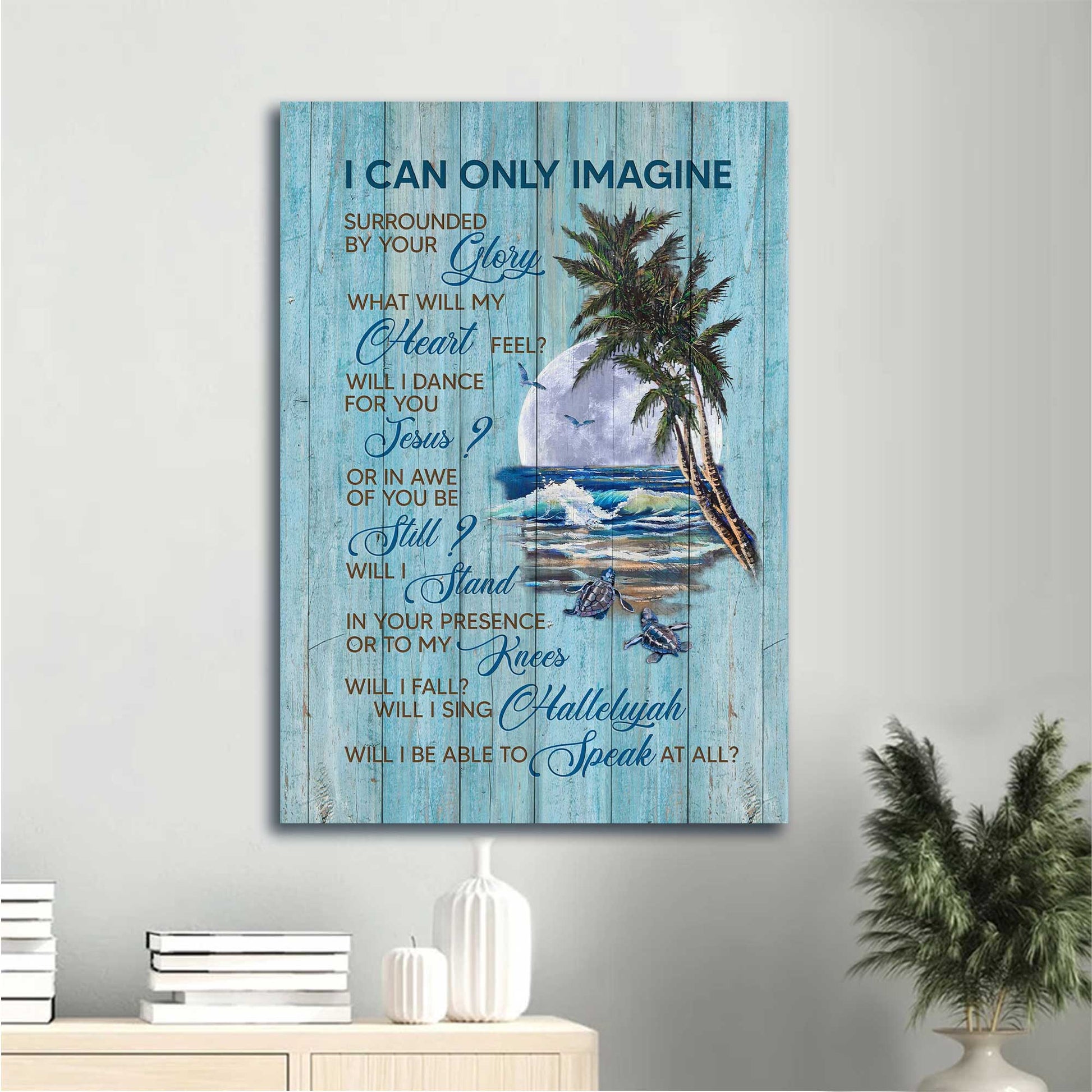 The image of the turtles on the beach with moonlight and meaningful quotes of this amazing Jesus Portrait Canvas - Turtles, On The Beach, Moonlight Canvas - Gift For Christian - I Can Only Imagine Canvas Prints, Wall Art will definitely be a meaningful gift not only for your friend but also for your lover and your family. This wonderful canvas will be suitable for any room in your house from the kitchen, bedroom, and living room to outside space.