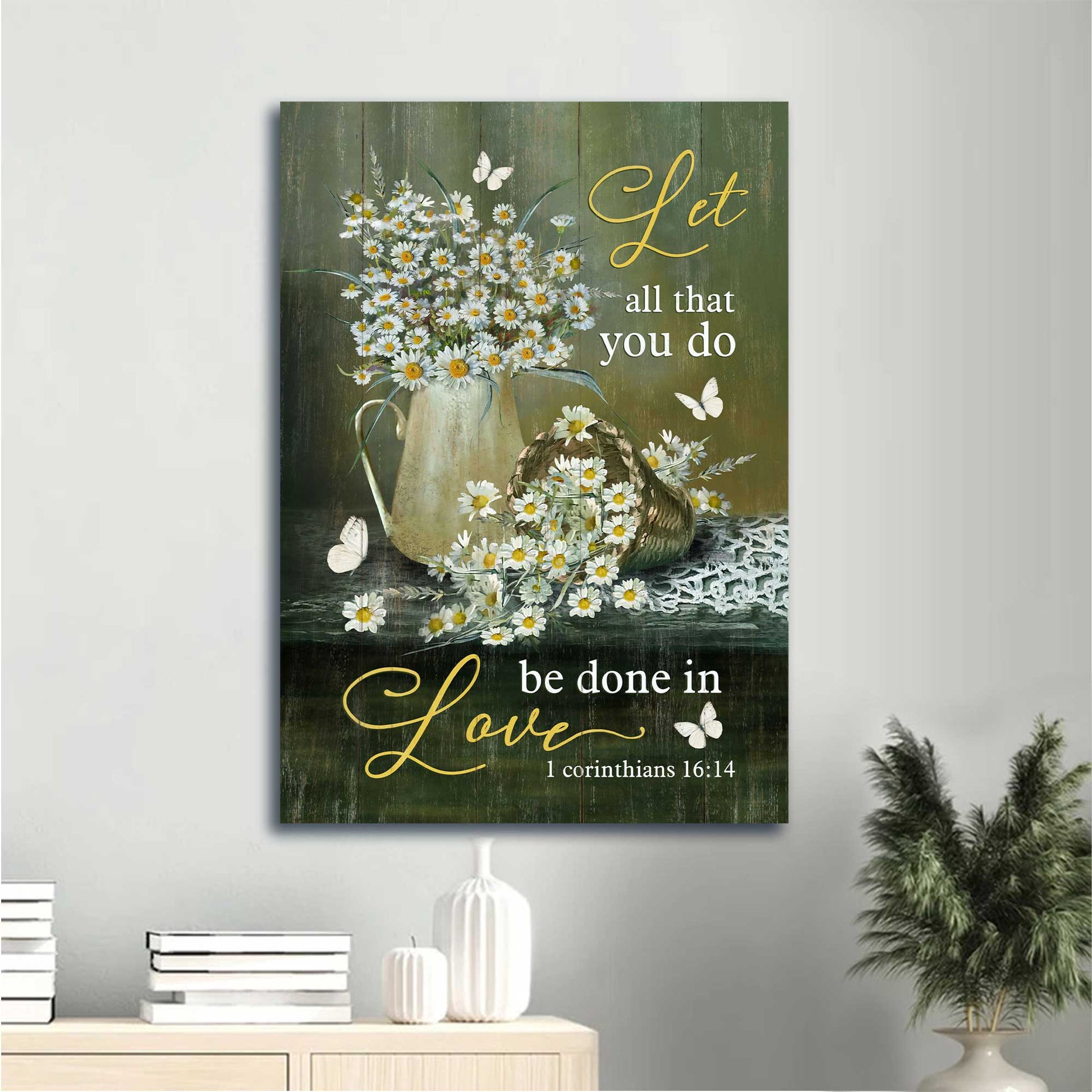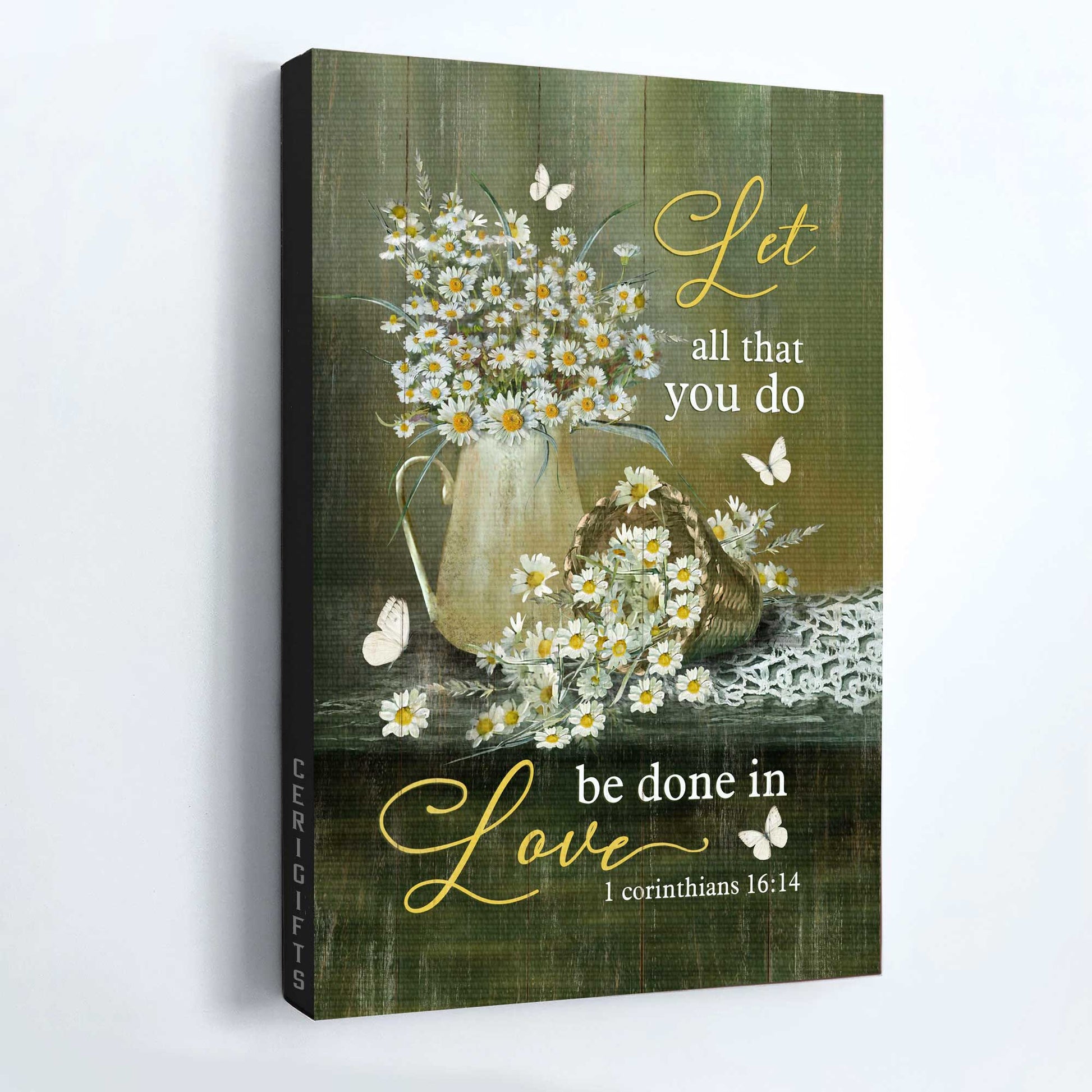 Jesus Portrait Canvas - Vintage Daisy, Beautiful Flower, Butterfly Canvas - Gift For Christian - Let All That You Do Be Done In Love Canvas Prints, Christian Wall Art will suit any room in your house from the living room, bedroom and kitchen to the entryway.