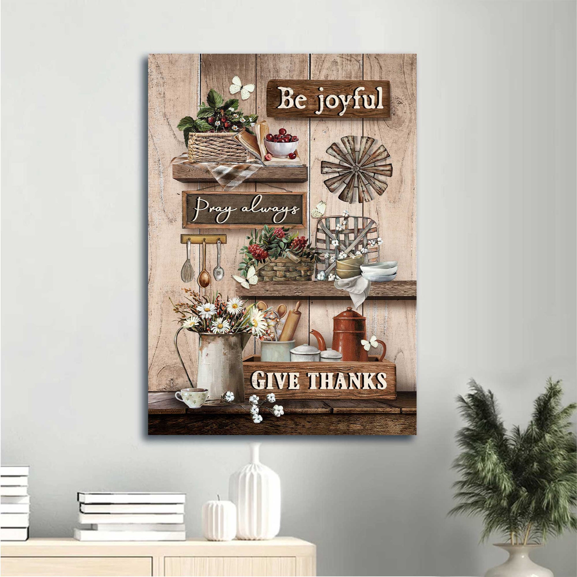 Jesus Portrait Canvas - Vintage Kitchen, Cranberry Drawing Canvas - Gift For Christian - Be Joyful, Pray Always, Give Thanks Canvas
