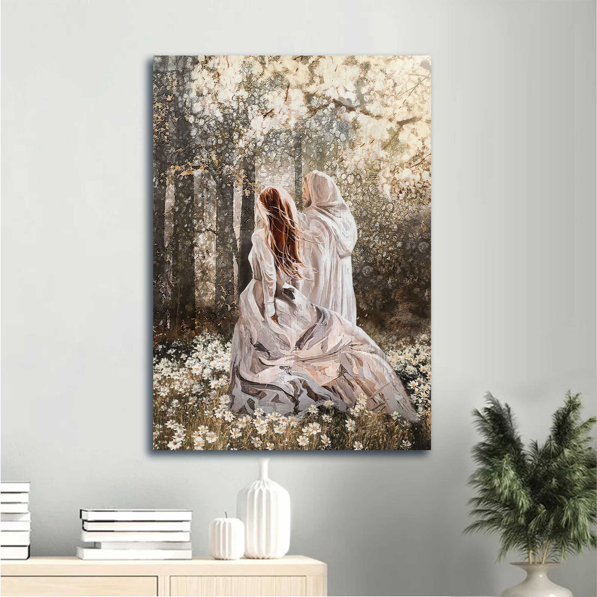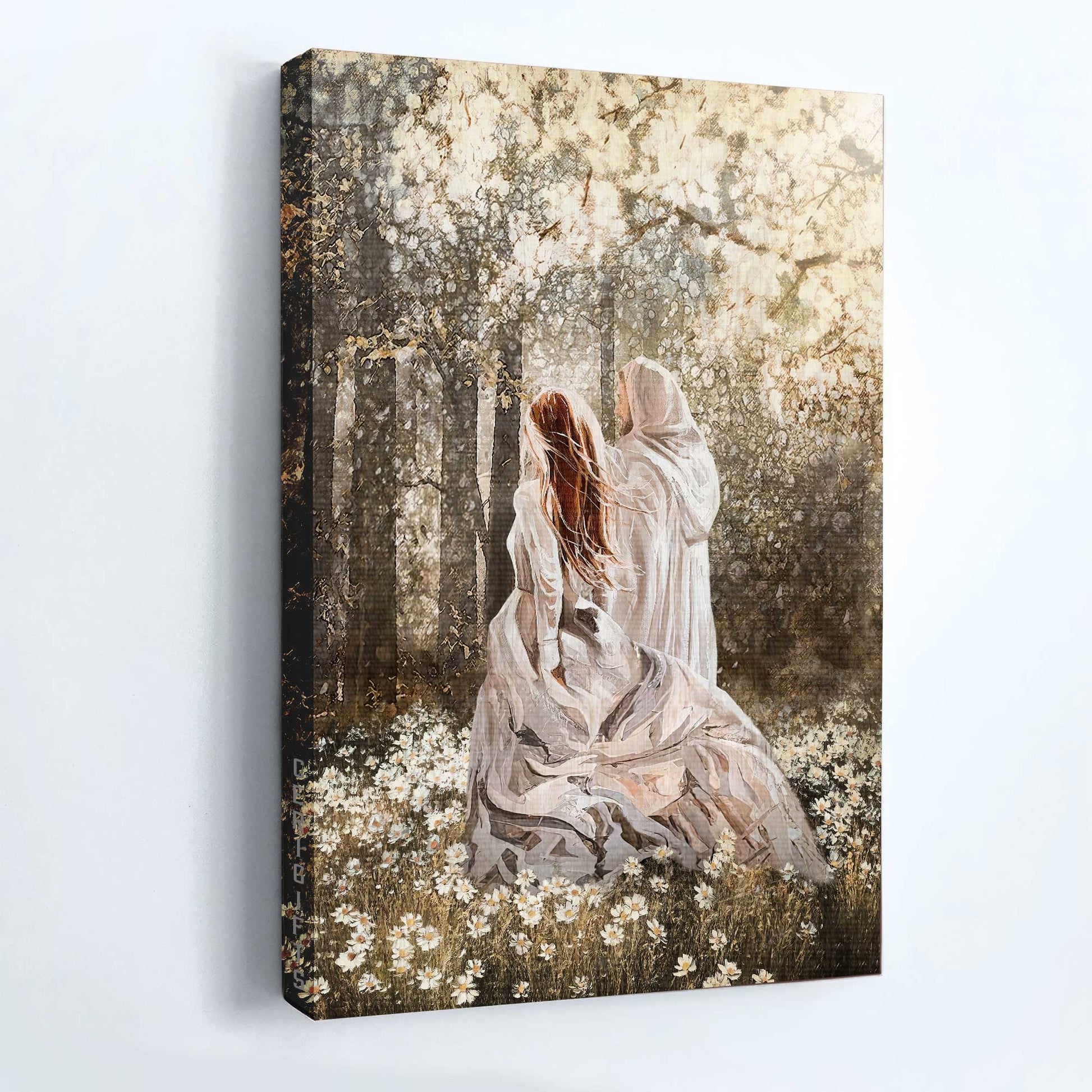 Jesus Portrait Canvas - Walking With Jesus, Beautiful Girl Painting, In The Forest, Among The Flower Field Canvas - Gift For Christian Canvas Prints, Christian Wall Art is a perfect gift for your friends, your lover and even your family, especially for those who are religious Christian.