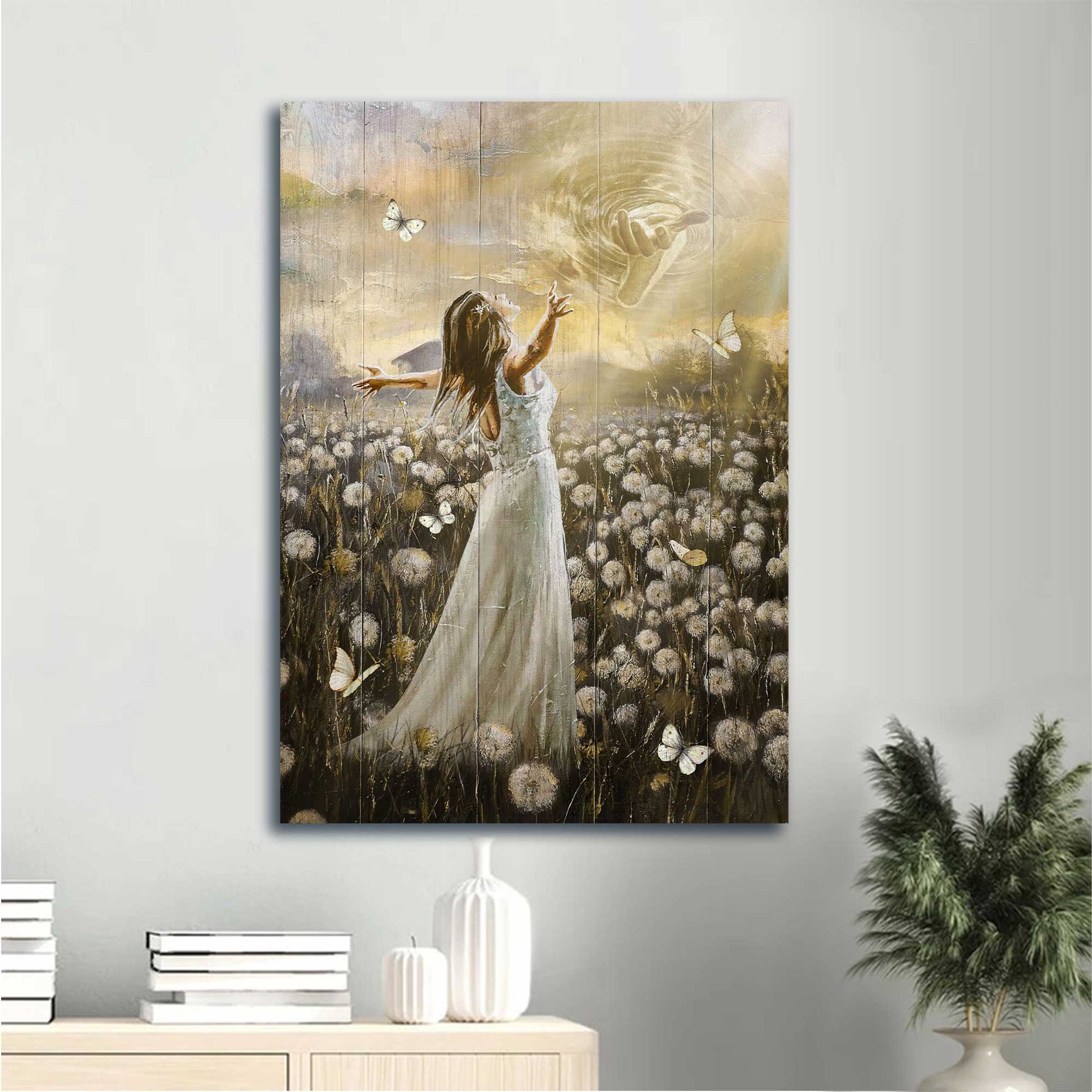 Jesus Portrait Canvas - Walking with Jesus, Dandelion field, Jesus calls, Beautiful girl canvas - Gift For Christian