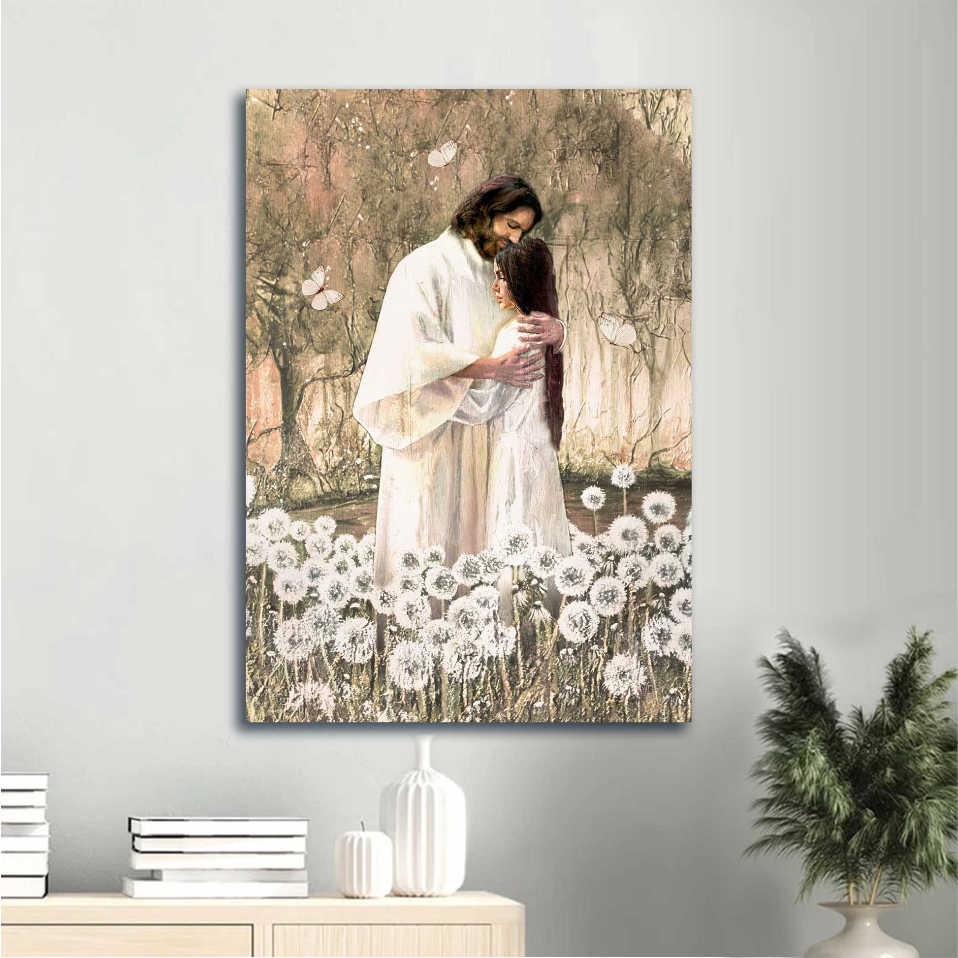 Across our canvas, it depicts an image of Jesus hugging a beautiful girl on a pretty dandelion field. Its fantastic color scheme makes it a versatile piece in nearly any style of home. Our Jesus Portrait Canvas - Walking With Jesus, Pretty Dandelion Field Canvas - Gift For Christian - The World In His Arm Canvas Prints, Christian Wall Art is lovely artwork that will suit any room in your house from the living room, bedroom and kitchen to the entryway.