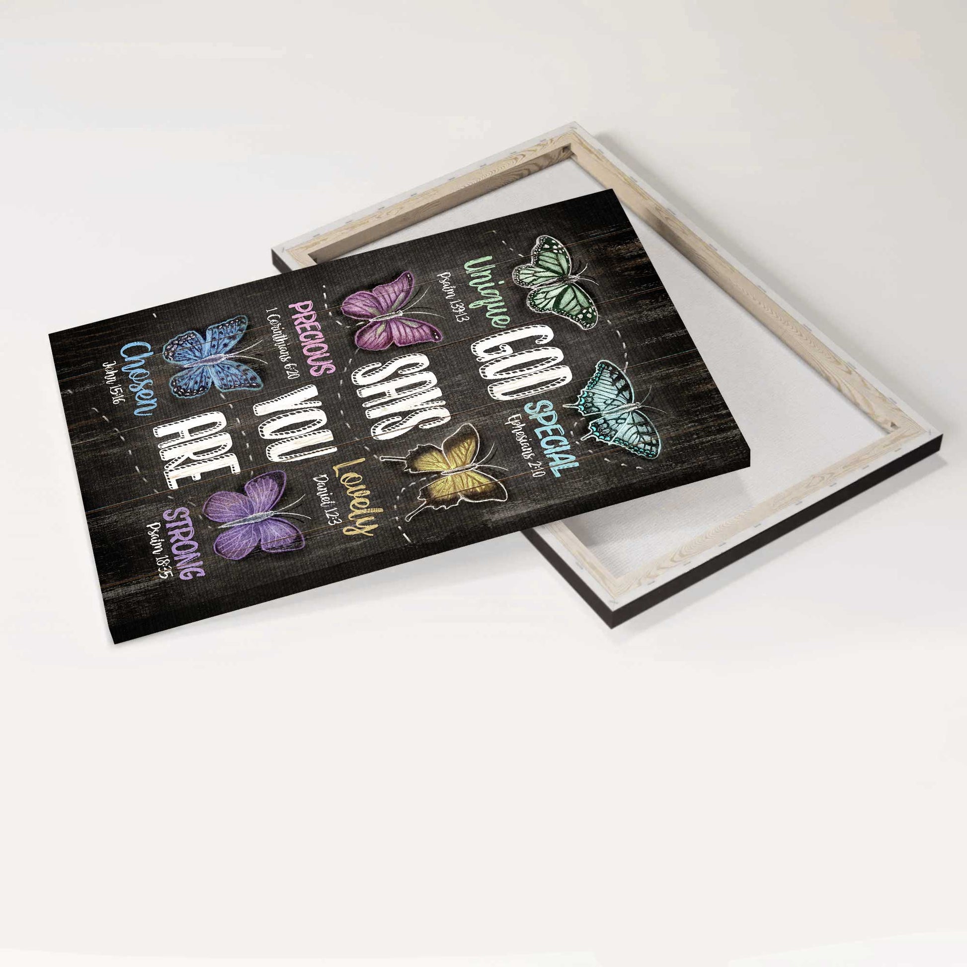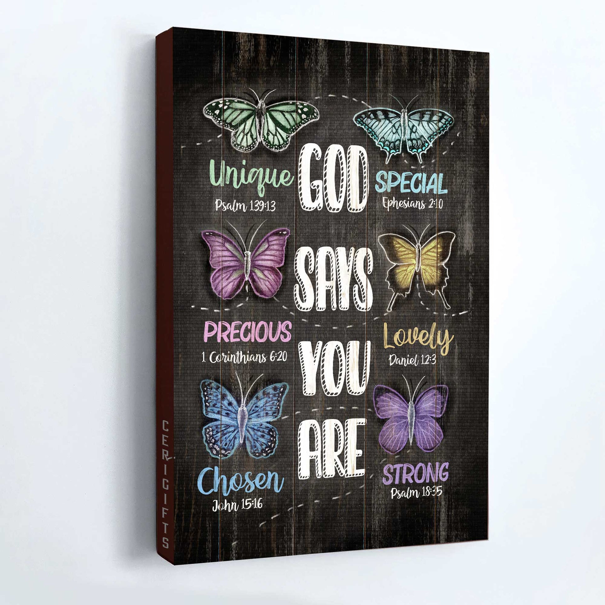 Abstract painting, Watercolor butterflies, Bible verses, God says you are - Jesus Portrait Canvas Prints, Home Decor Wall Art is a beautiful painting for anyone who loves butterflies. This canvas will satisfy butterfly lovers. Furthermore, each cat contains each virtue that is God’s encouragement for you. Abstract painting, Watercolor butterflies, Bible verses, God says you are - Jesus Portrait Canvas Prints, Home Decor Wall Art is also a perfect gift for Christian friends or loved ones.