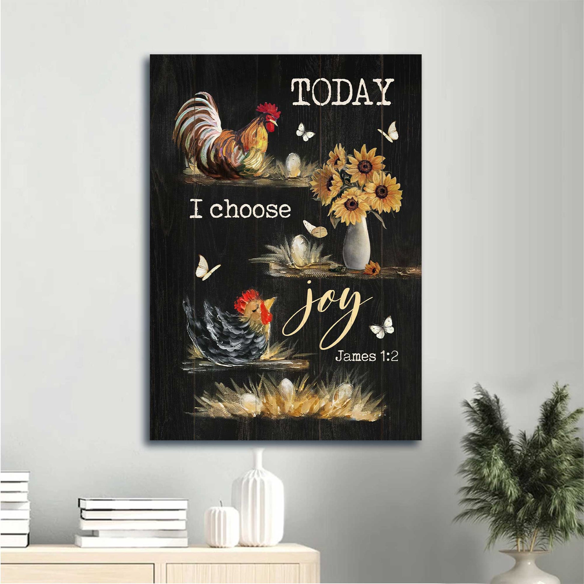 Jesus Portrait Canvas - Watercolor Rooster, Sunflower Vase, Black Background Canvas - Gift For Christian - Today I Choose Joy Canvas