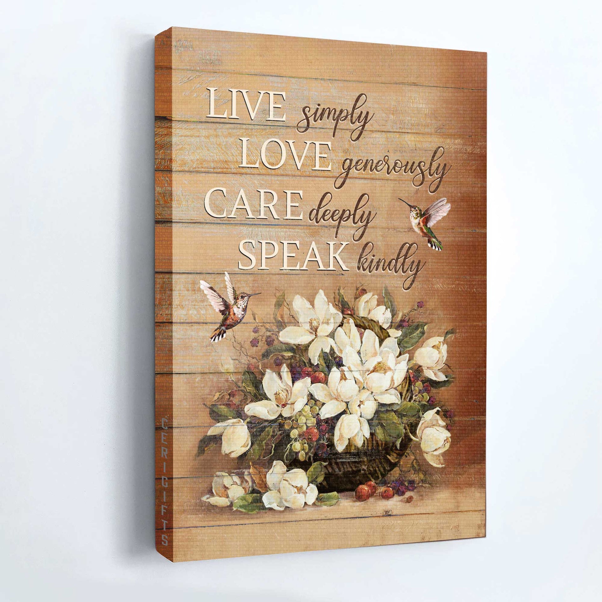 Let’s decorate Jesus Portrait Canvas - White Flower Vase, Hummingbird, Still Life Canvas - Gift For Christian - Live Simply, Love Generously, Care Deeply, Speak Kindly Canvas Prints, Christian Wall Art in your house from kitchen, bedroom and bathroom to living room.