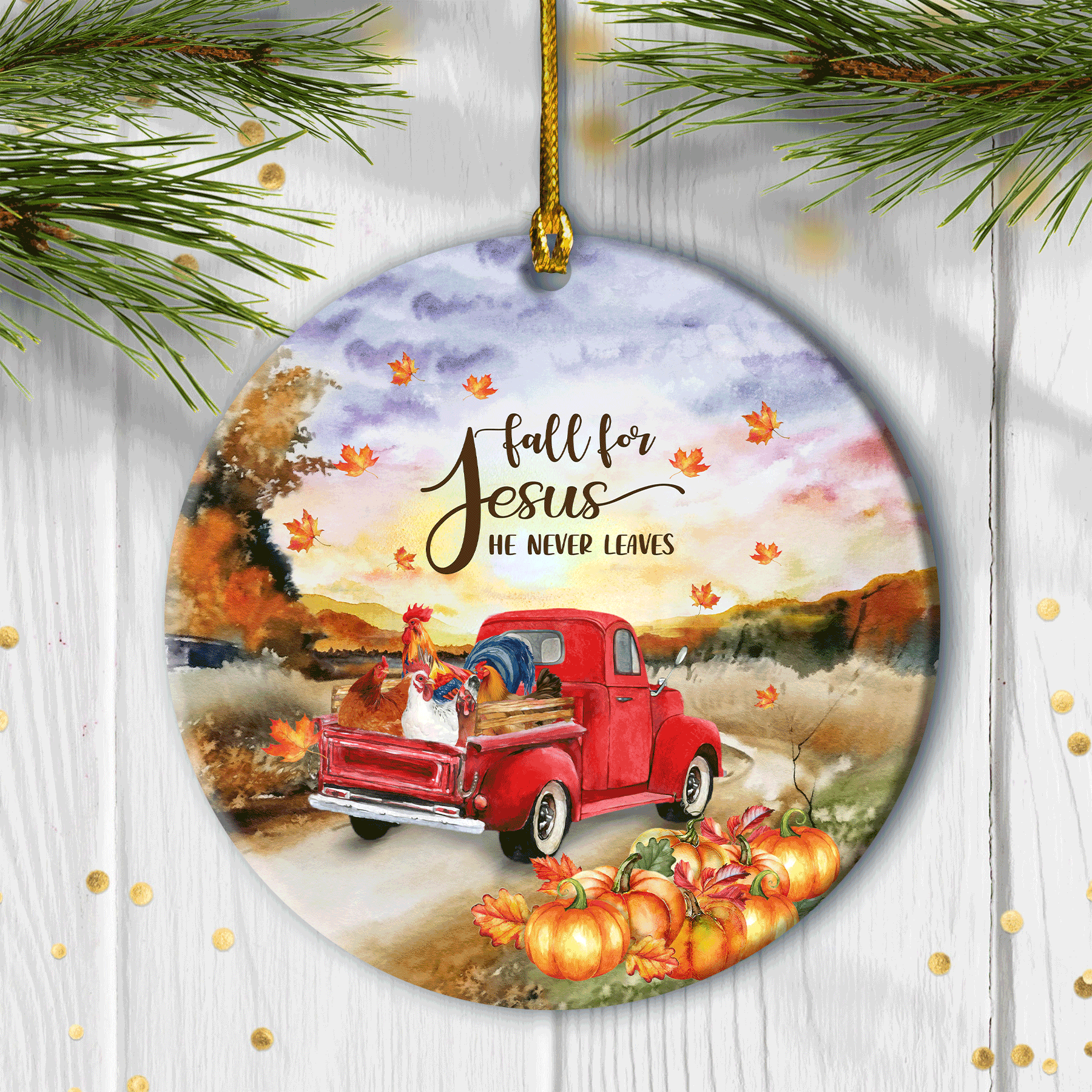 Jesus And The Chickens - Ceramic Circle Ornament - Jesus, God, Faith Painting - Gift for Religious Christian