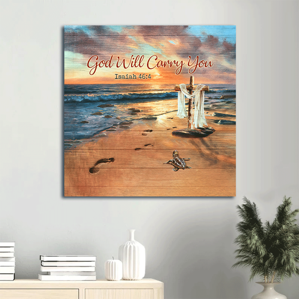 Jesus Square Canvas- Footprints on sand, On the beach, Sunset painting canvas- Gift for Christian- God will carry you - Square Canvas Prints, Christian Wall Art