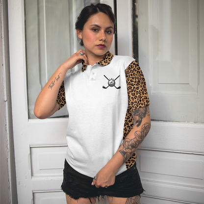 Leopard Pattern Short Sleeve Women Polo Shirt, Golf Hair Don't Care Golf Shirt For Ladies, Unique Female Golf Gift
