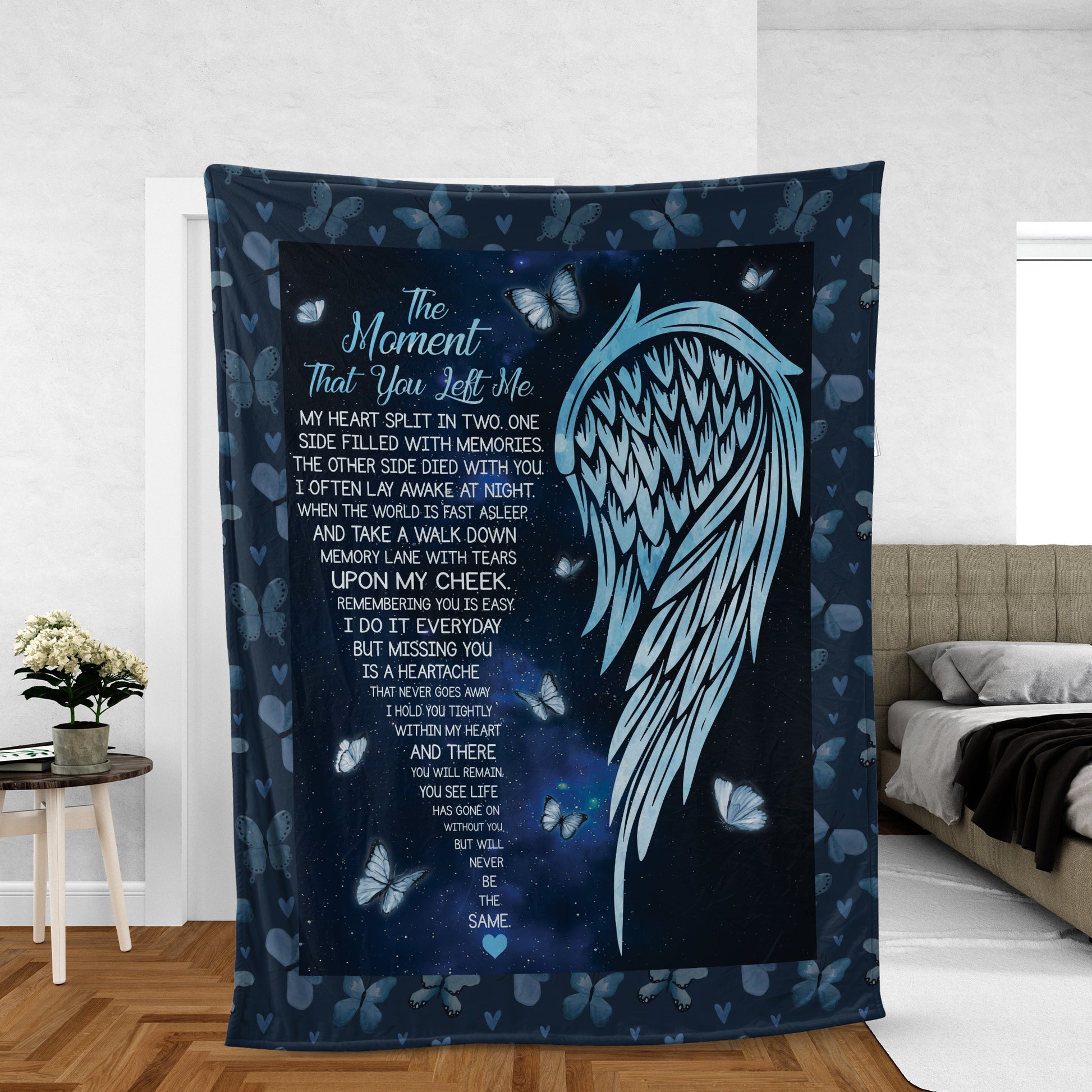 Memorial Blanket, Heaven Blanket, Angel Wings Blanket, Sympathy Gift, Remembrance Gift - Blue Butterfly, The Moment That You Left Me