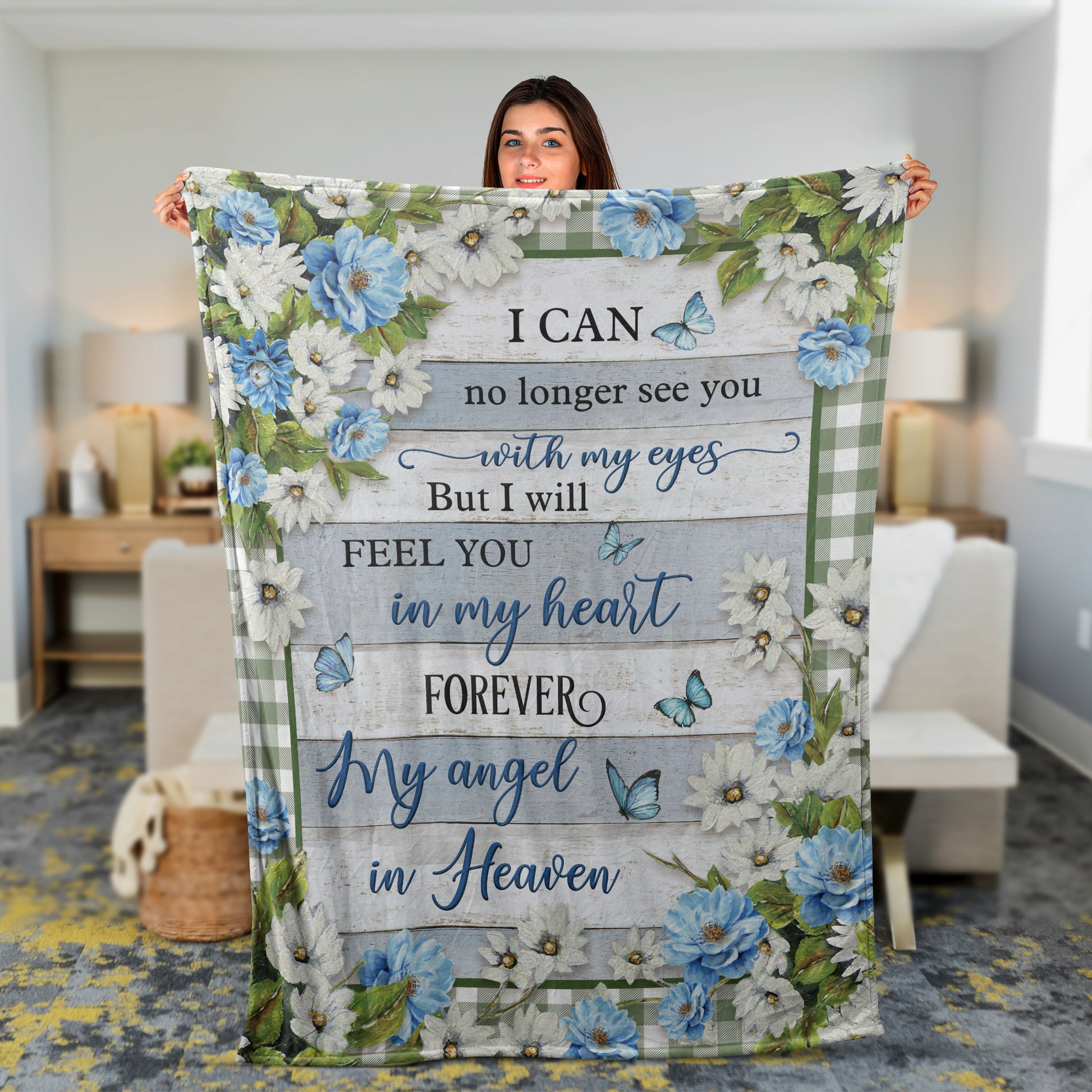 Memorial Blanket, Heaven Blanket, Butterfly And Flower Blanket, Sympathy Gift, Remembrance Gift - I Will Feel You In My Heart Forever