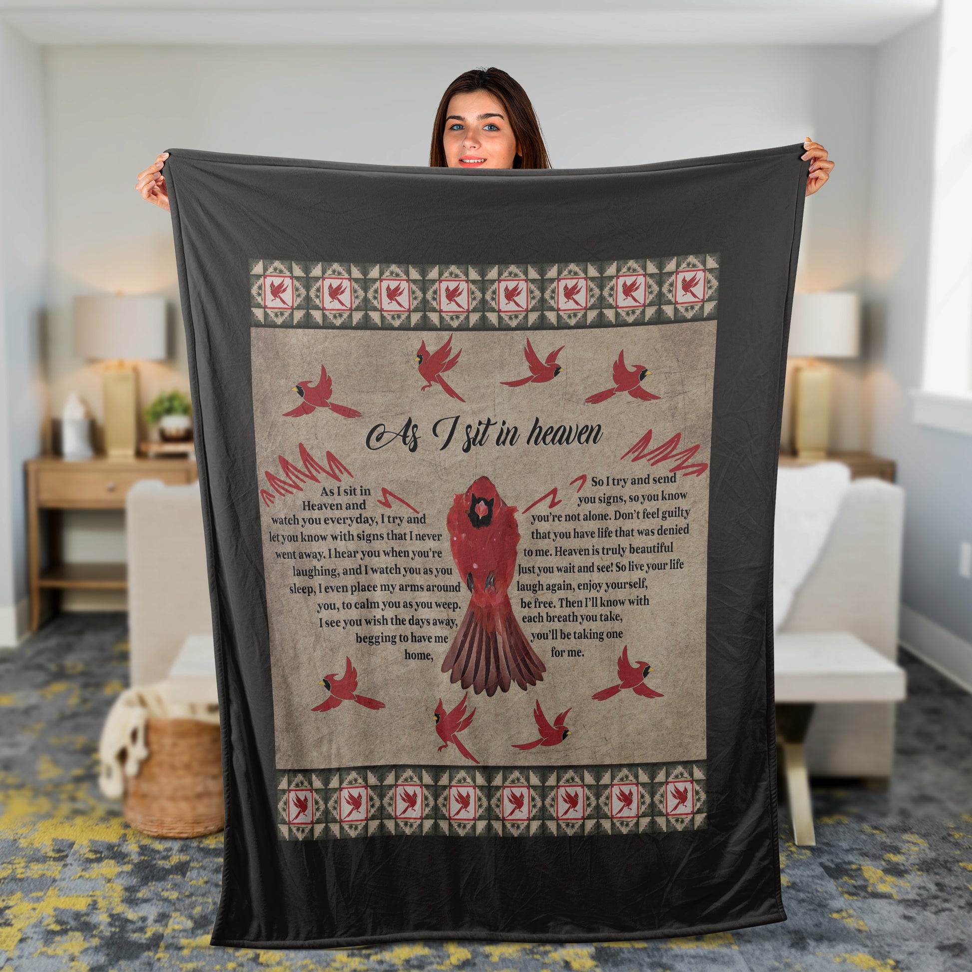 Memorial Blanket, Heaven Blanket, Cardinal Blanket, Sympathy Gift, Remembrance Gift - Watercolor Cardinal, Red Wings, As I Sit In Heaven