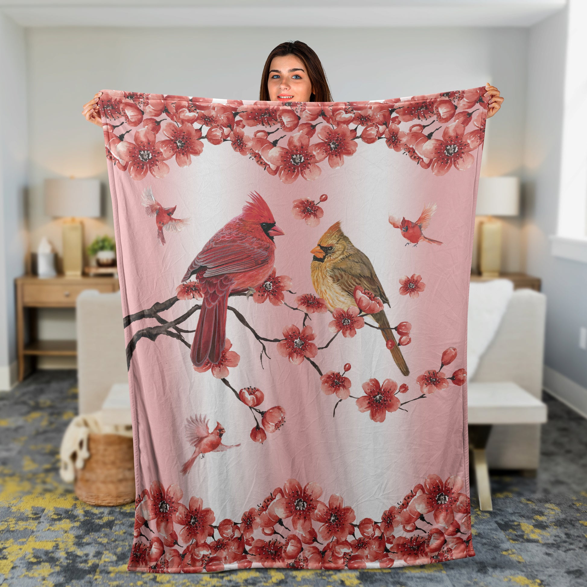 Memorial Blanket, Heaven Blanket, Cardinal Couples Blanket, Sympathy Gift, Remembrance Gift - Red Peach Blossom, Flower Frame, Spring Drawing