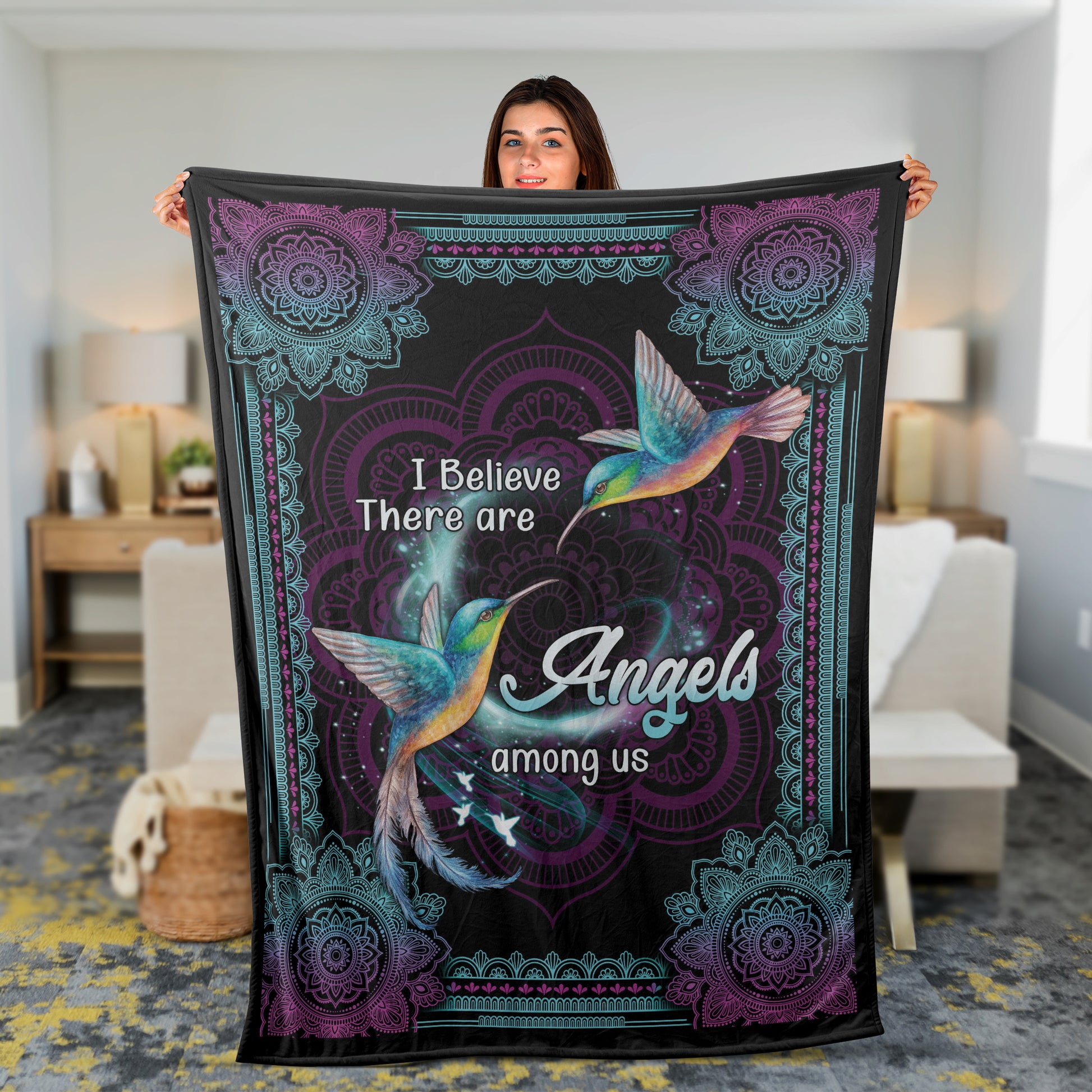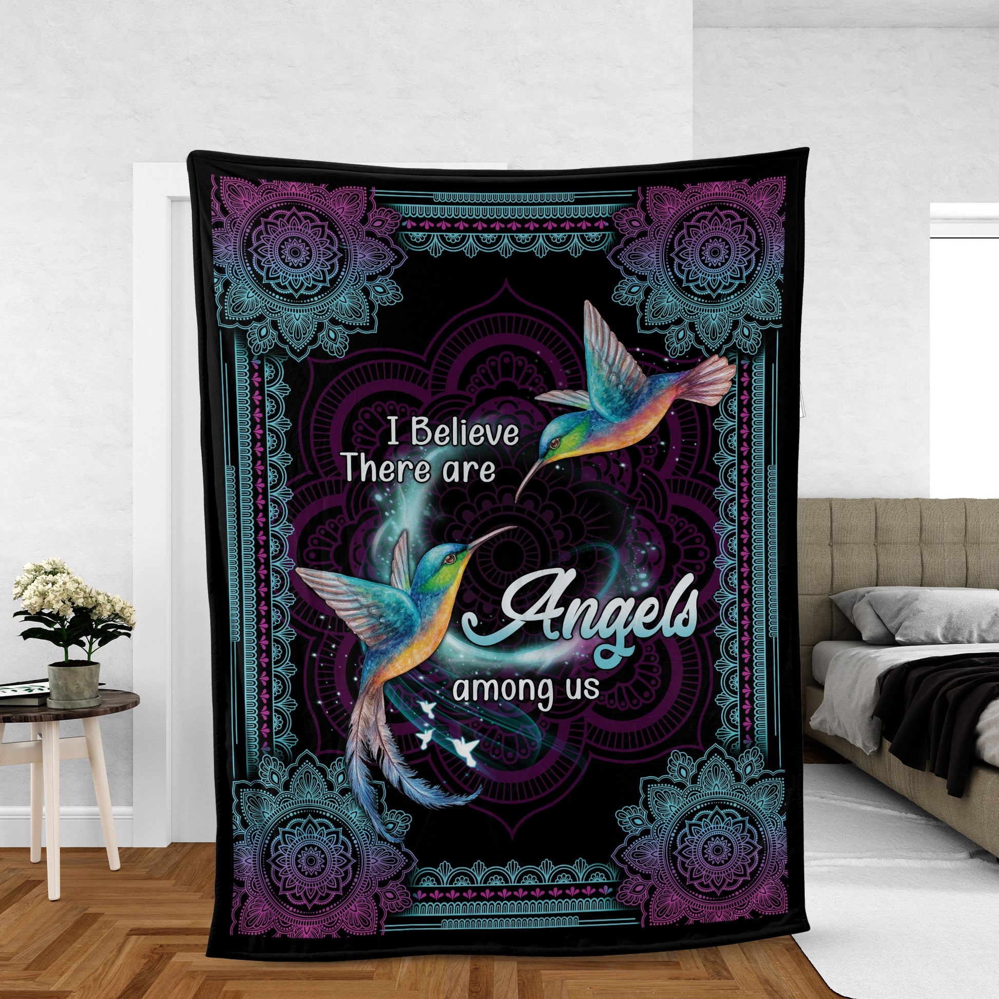 Memorial Blanket, Heaven Blanket, Hummingbird Blanket, Sympathy Gift, Remembrance Gift - I Believe There Are Angels Among Us