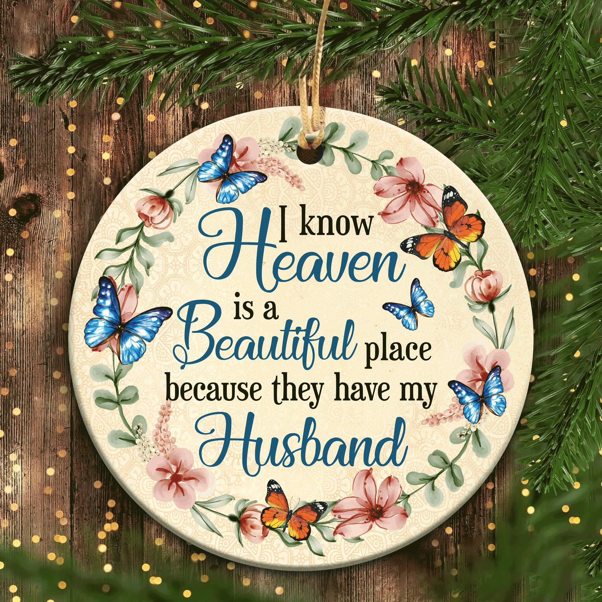 Memorial Circle Ceramic Ornament, Memorial Gifts For Loss Of Husband - I Know Heaven Is Beautiful Place Because They Have My Husband