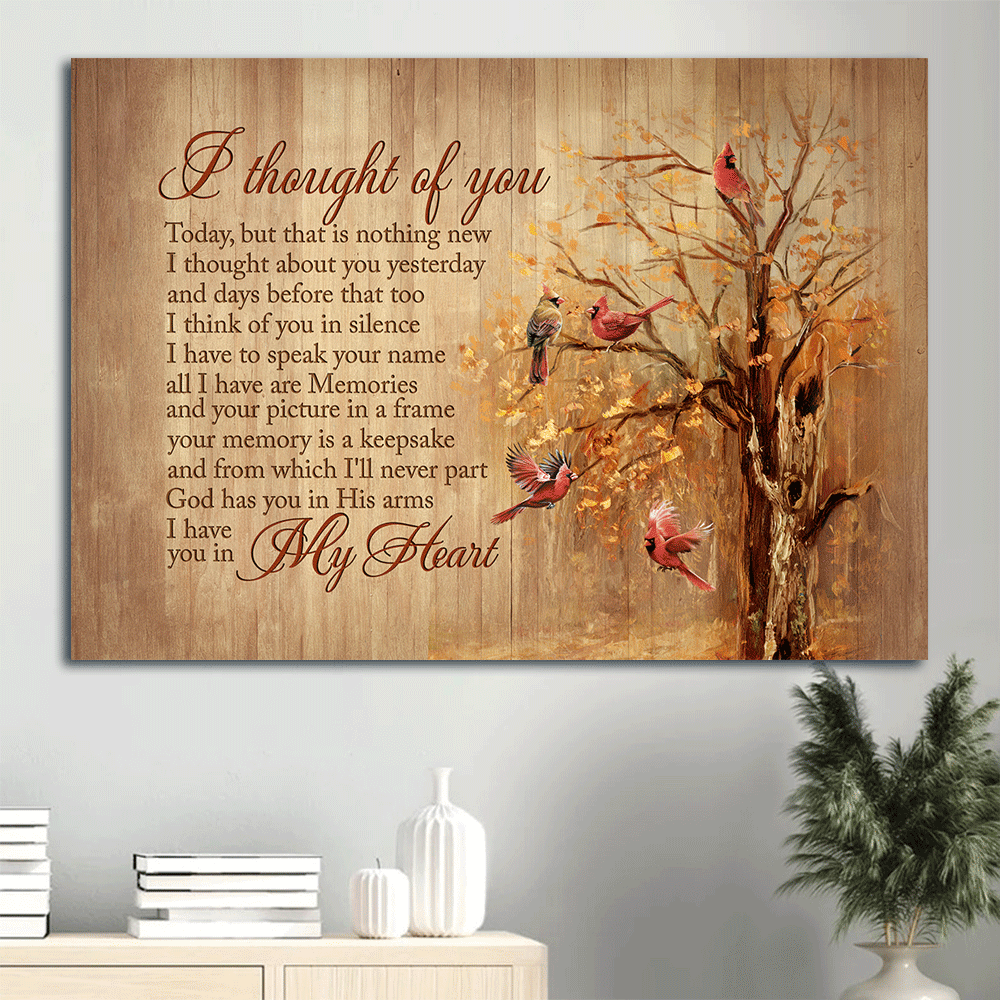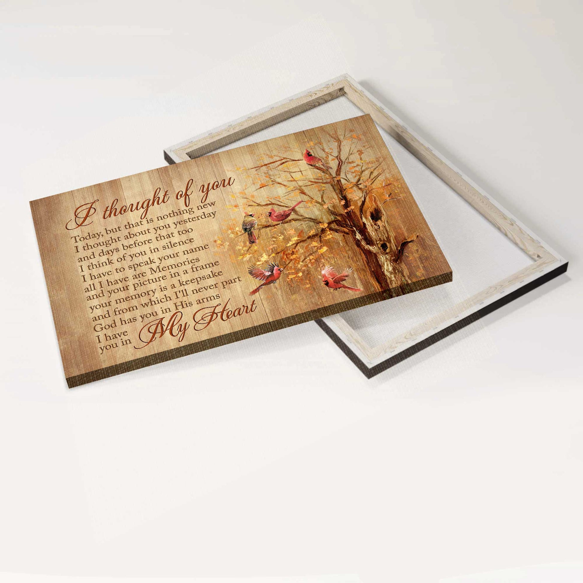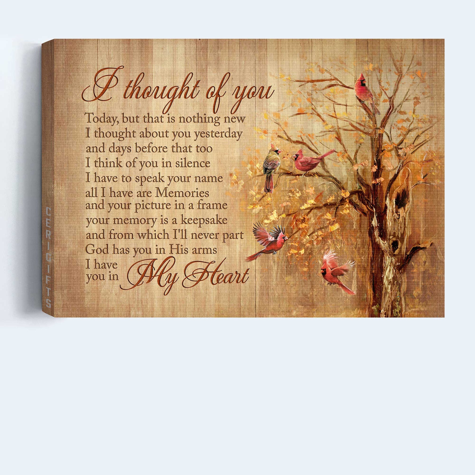 Memorial Landscape Canvas- Autumn Season, Red Cardinals, Positive Quote, Memorial Gift, Heaven Landscape Canvas- Gift For Members Family- I Thought Of You.