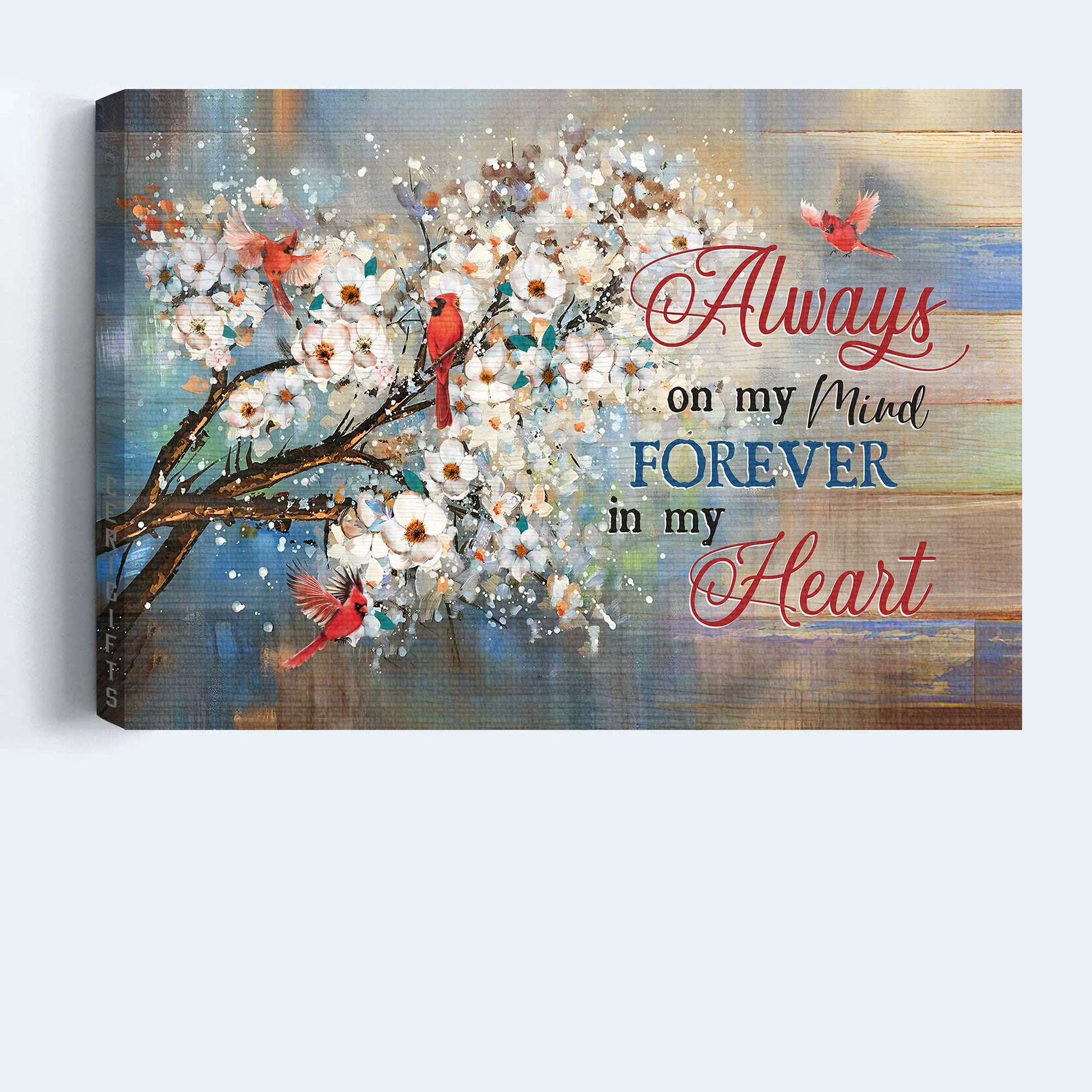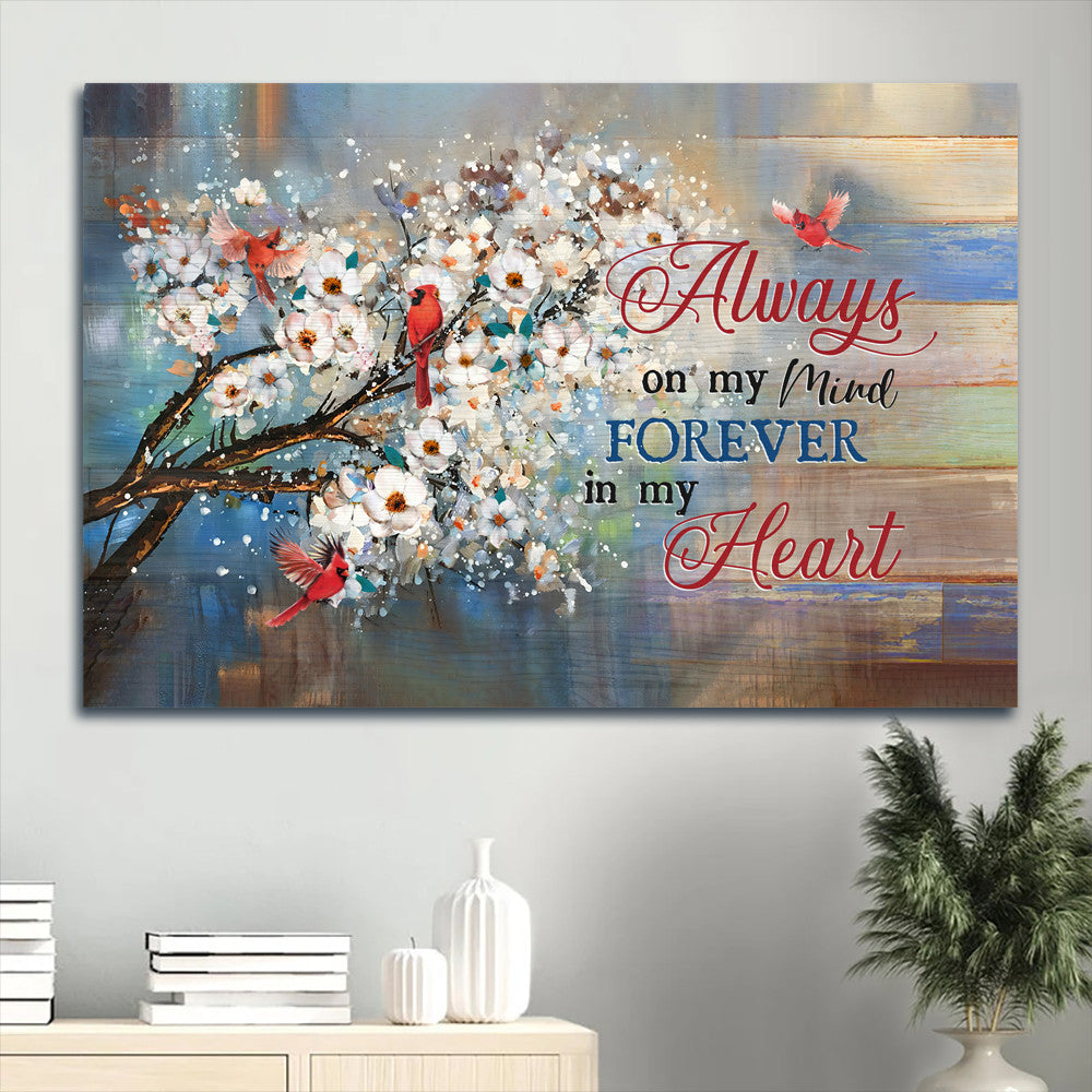 Memorial Landscape Canvas- Beautiful jasmine garden, Red cardinal canvas- Gift for members family- Always on my mind
