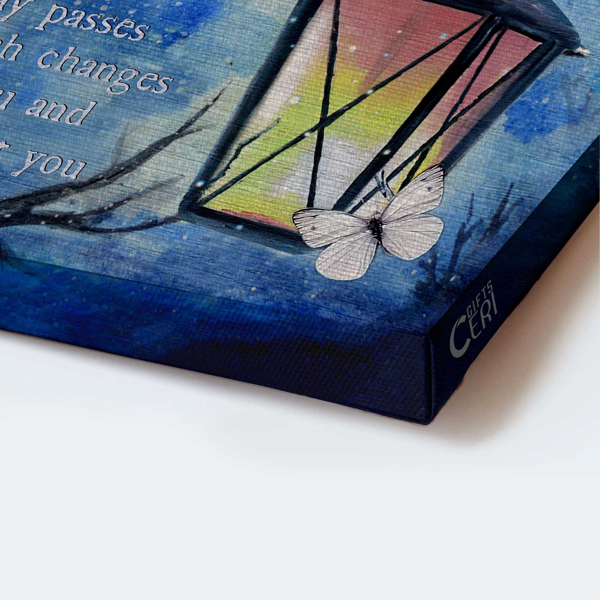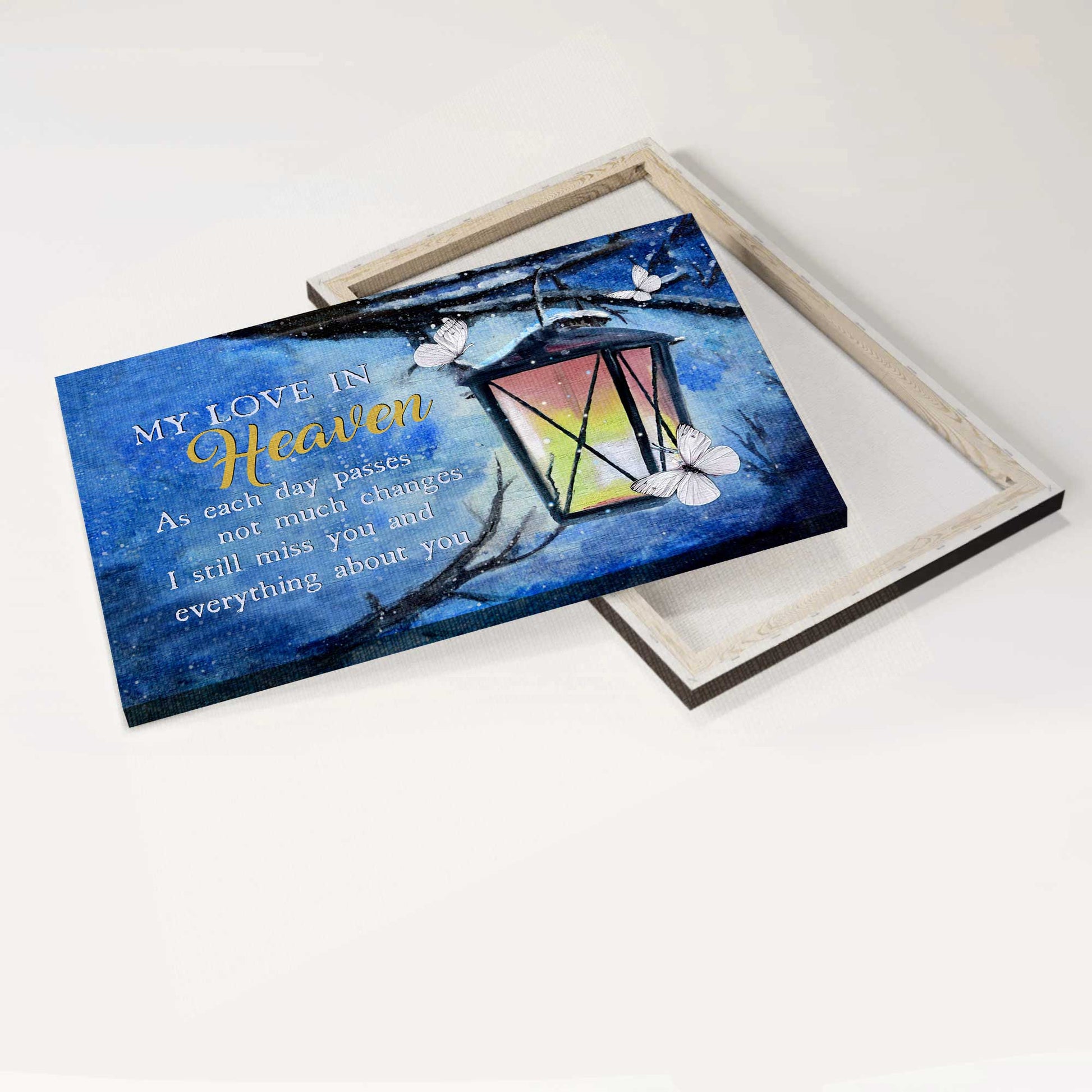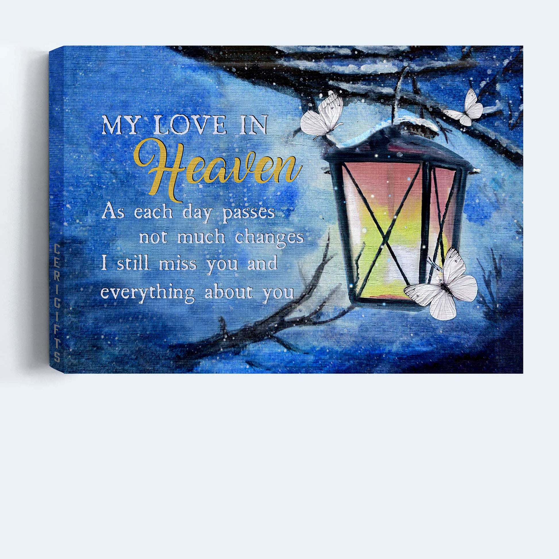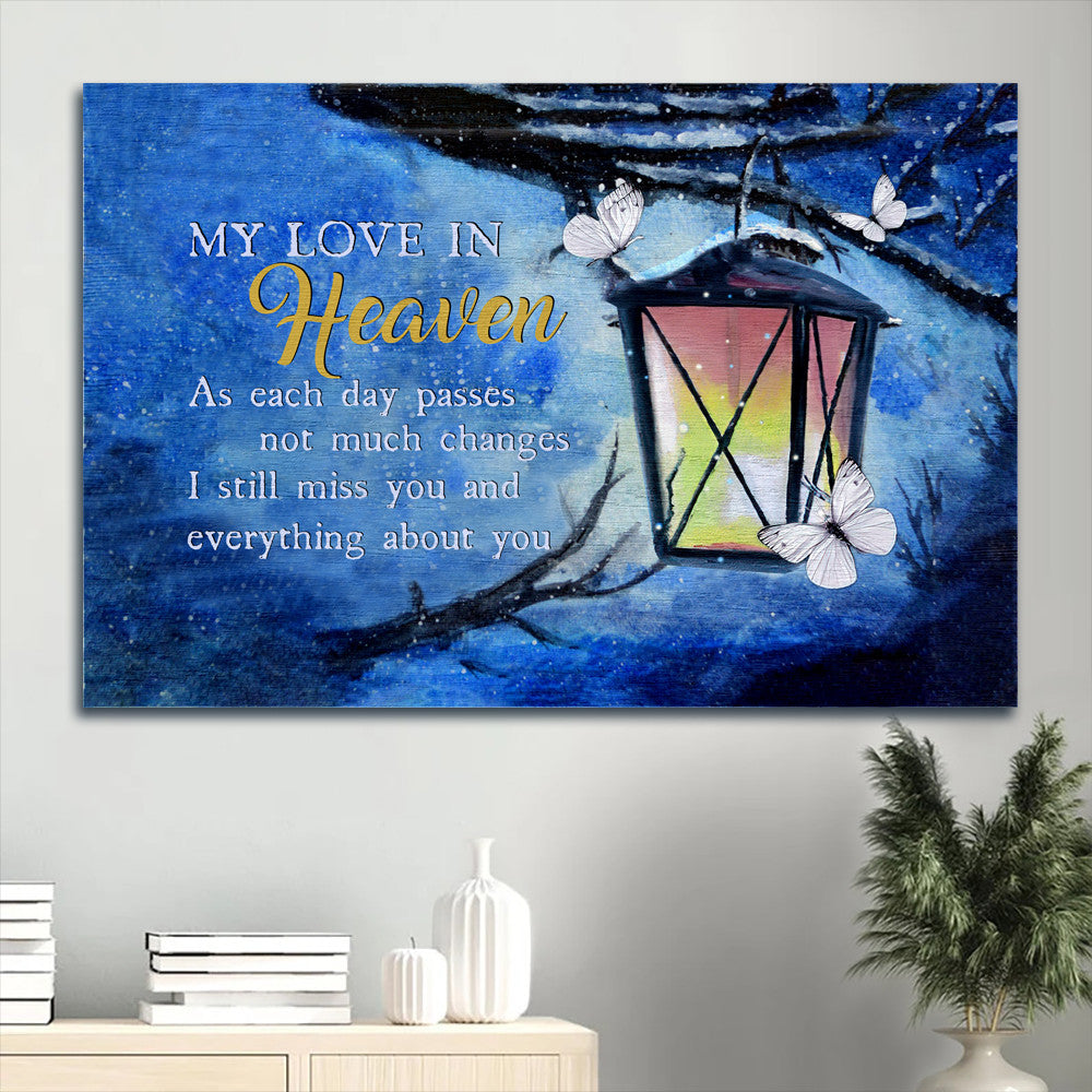 Memorial Landscape Canvas - Beautiful lantern, White butterfly, Blue night Landscape Canvas - Memorial Gift For Family Members - My love in heaven
