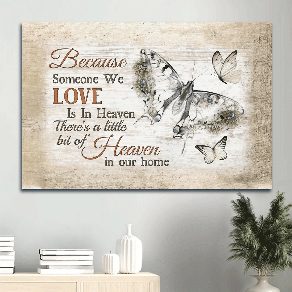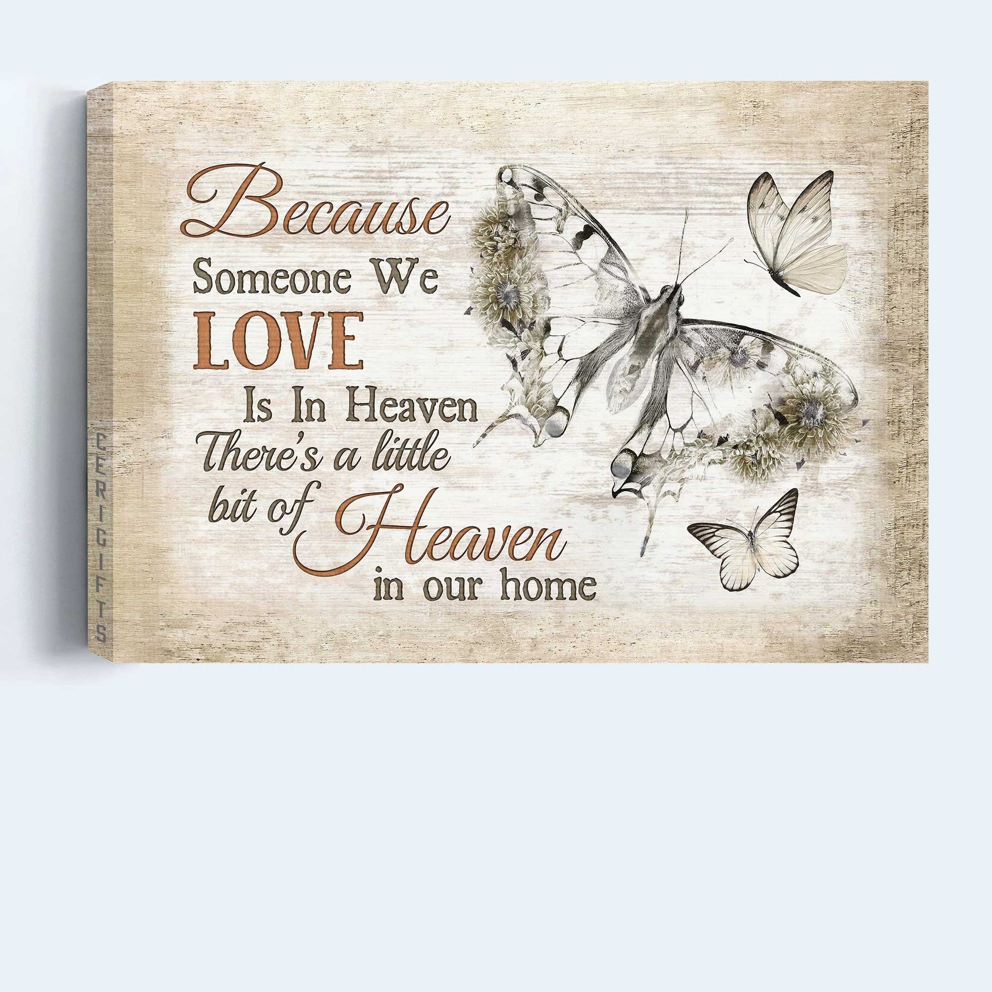 Memorial Landscape Canvas- Black butterfly, Butterfly drawing - Gift for Family- Because someone we love is in heaven - Heaven Landscape Canvas