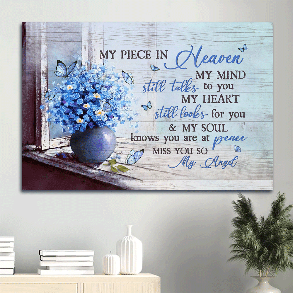 Memorial Landscape Canvas- Blue butterfly , Baby Blue Eyes canvas- Gift for family- My heart still looks for you & my souls knows you are at peace - Heaven Landscape Canvas Prints, Wall Art can be hung on the wall of your living room, bedroom, and hallway.