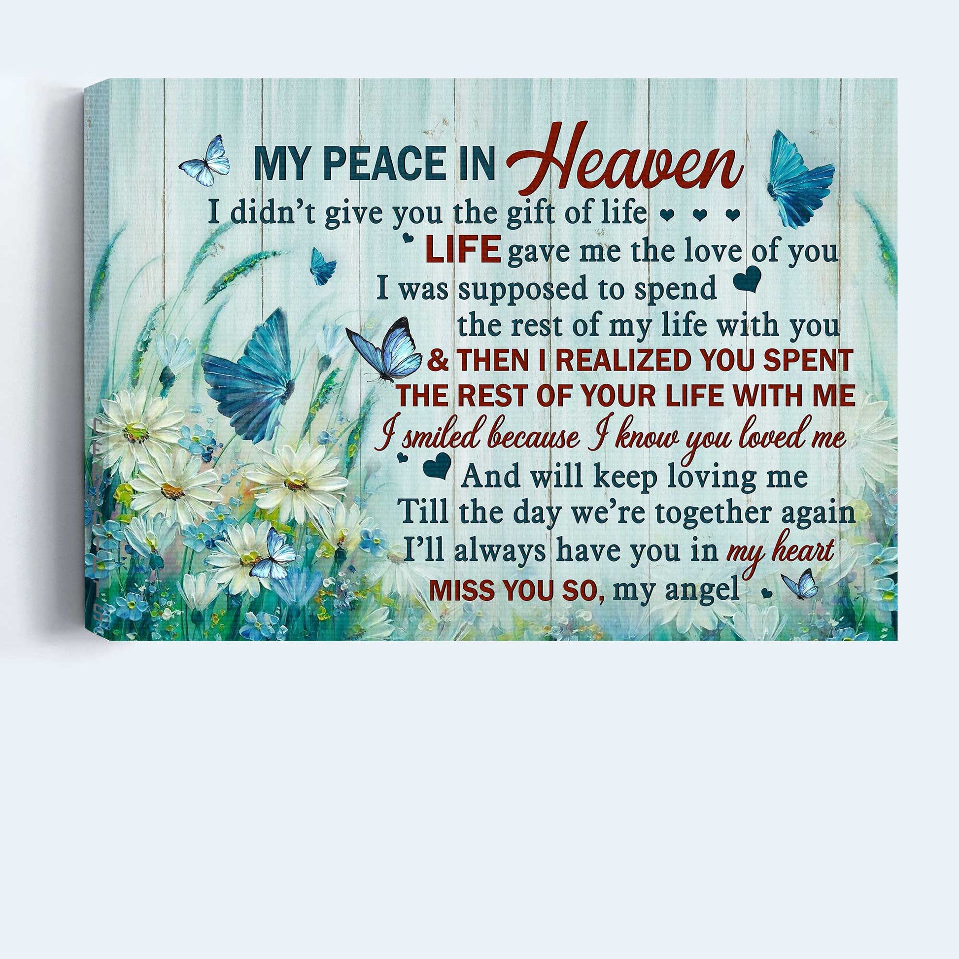 Memorial Landscape Canvas- Daisy field painting, Blue butterfly canvas- Gift for Christian- I smiled because I know you loved me