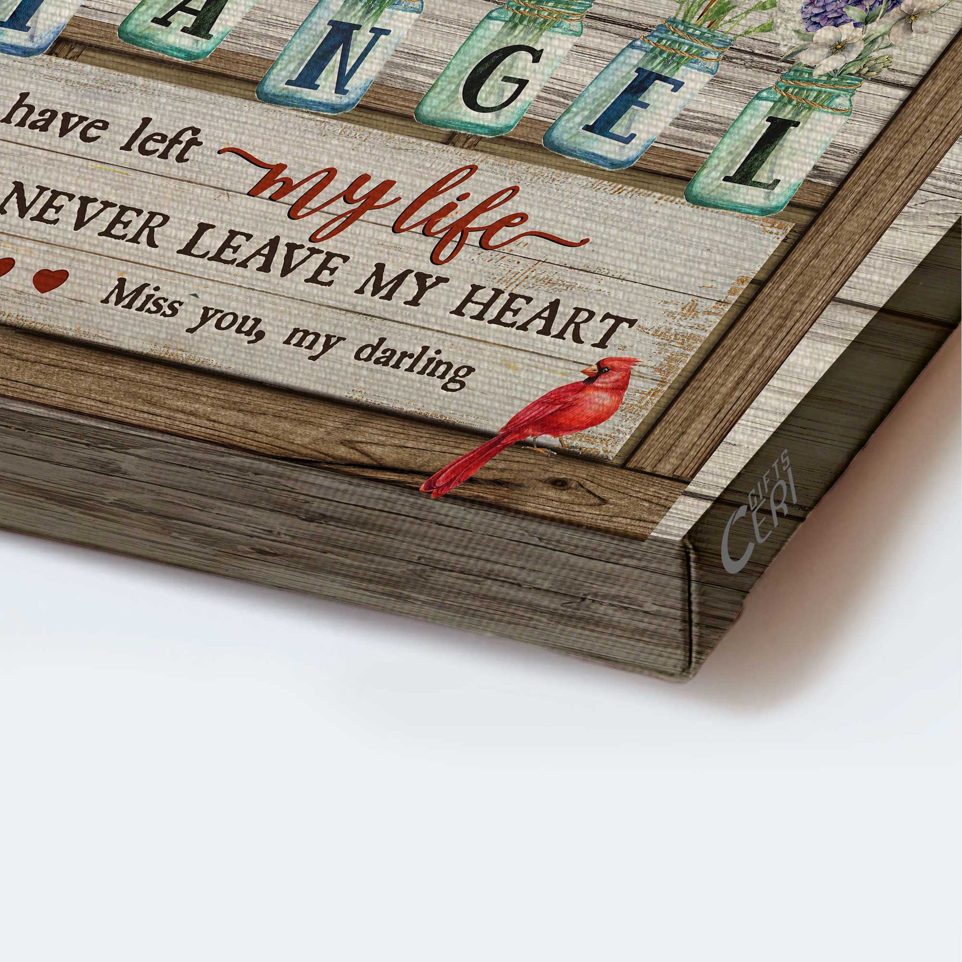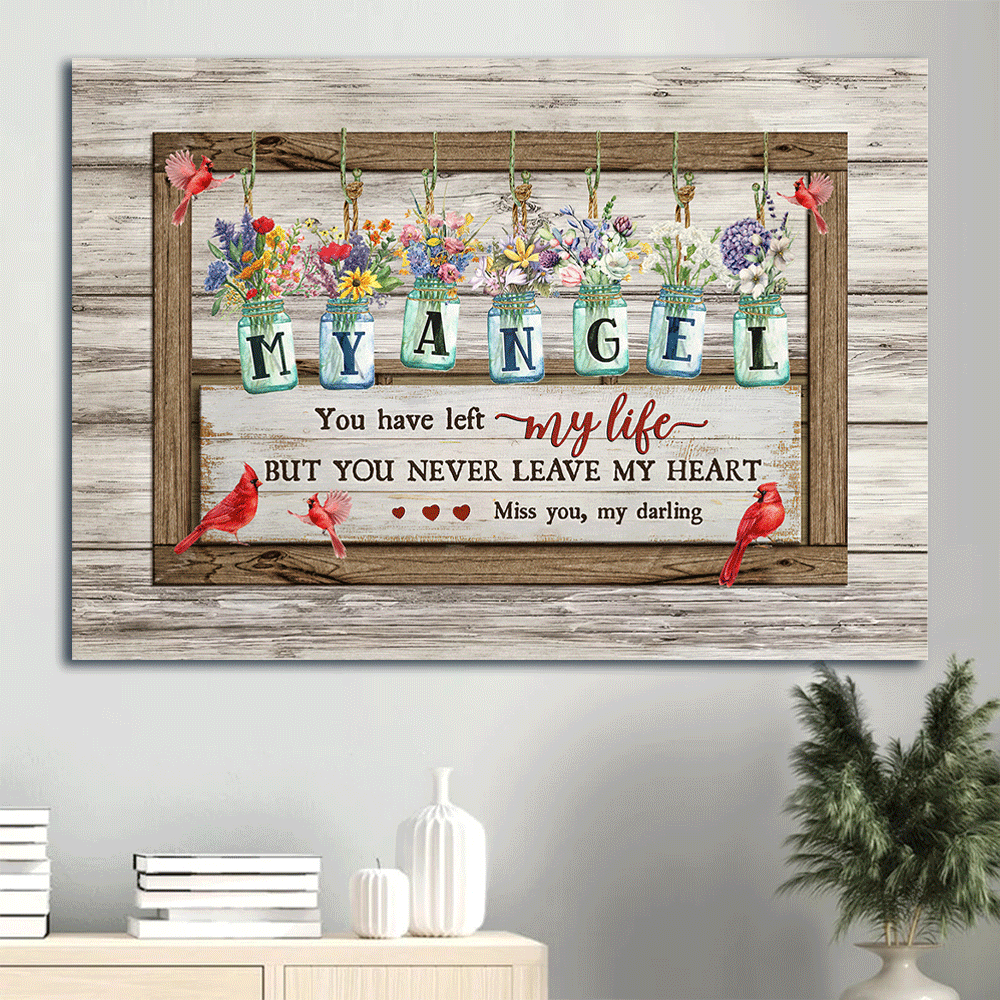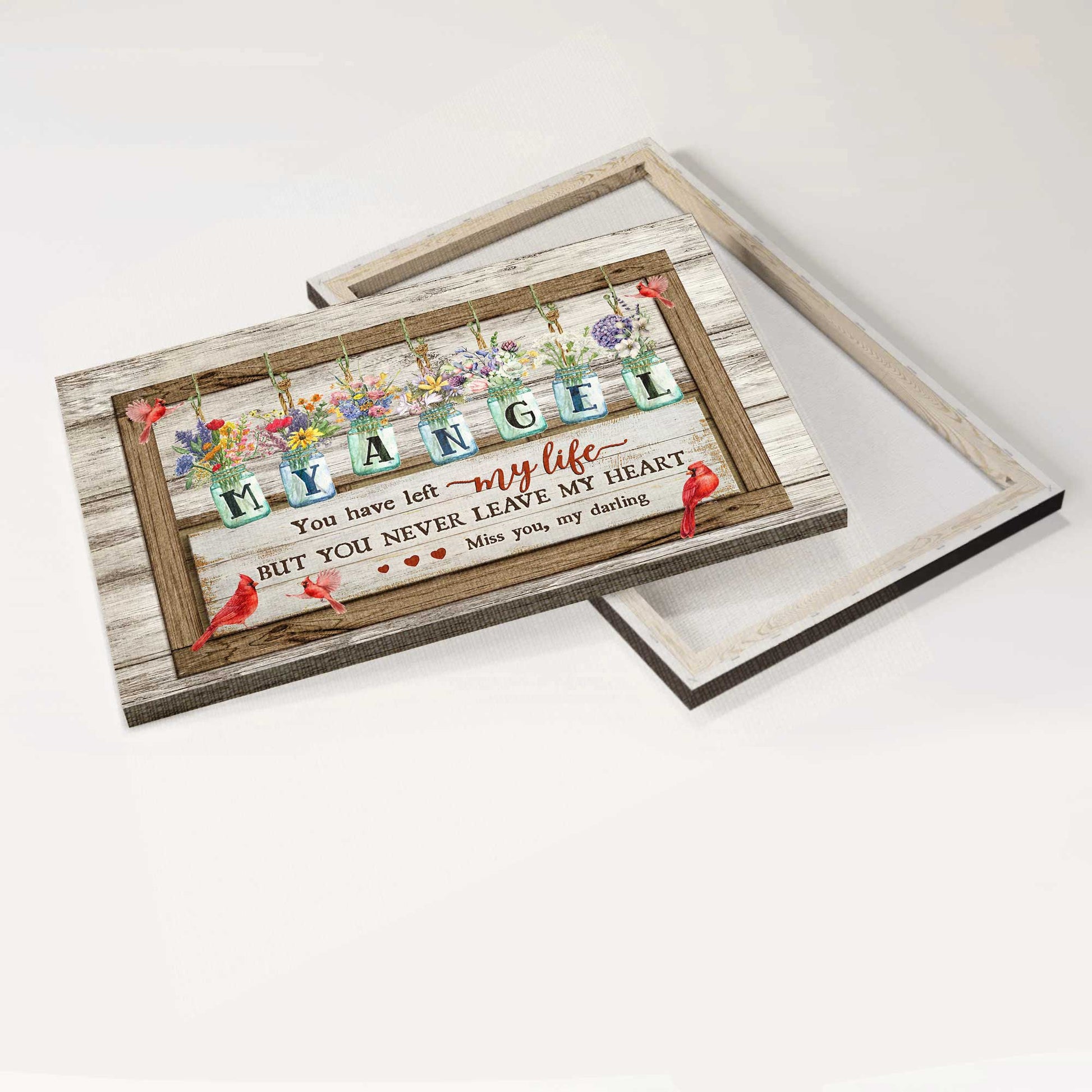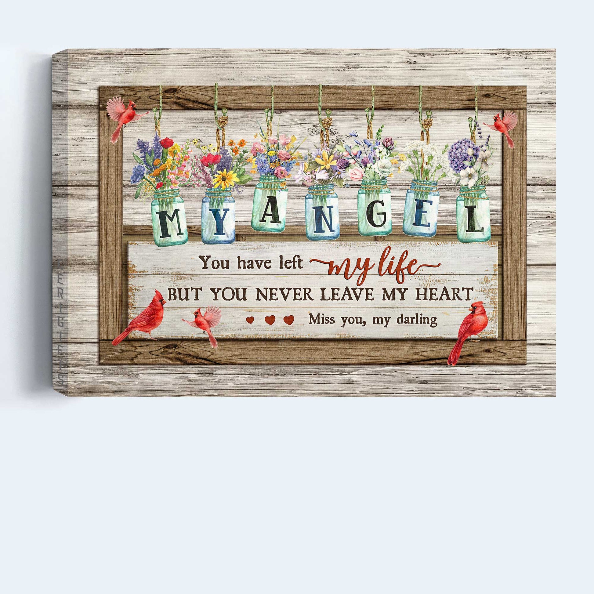 Memorial Landscape Canvas- Flower jars, Vintage painting, Cardinals canvas- Gift for members family- You never leave my heart - Heaven Landscape Canvas Prints, Wall Art
