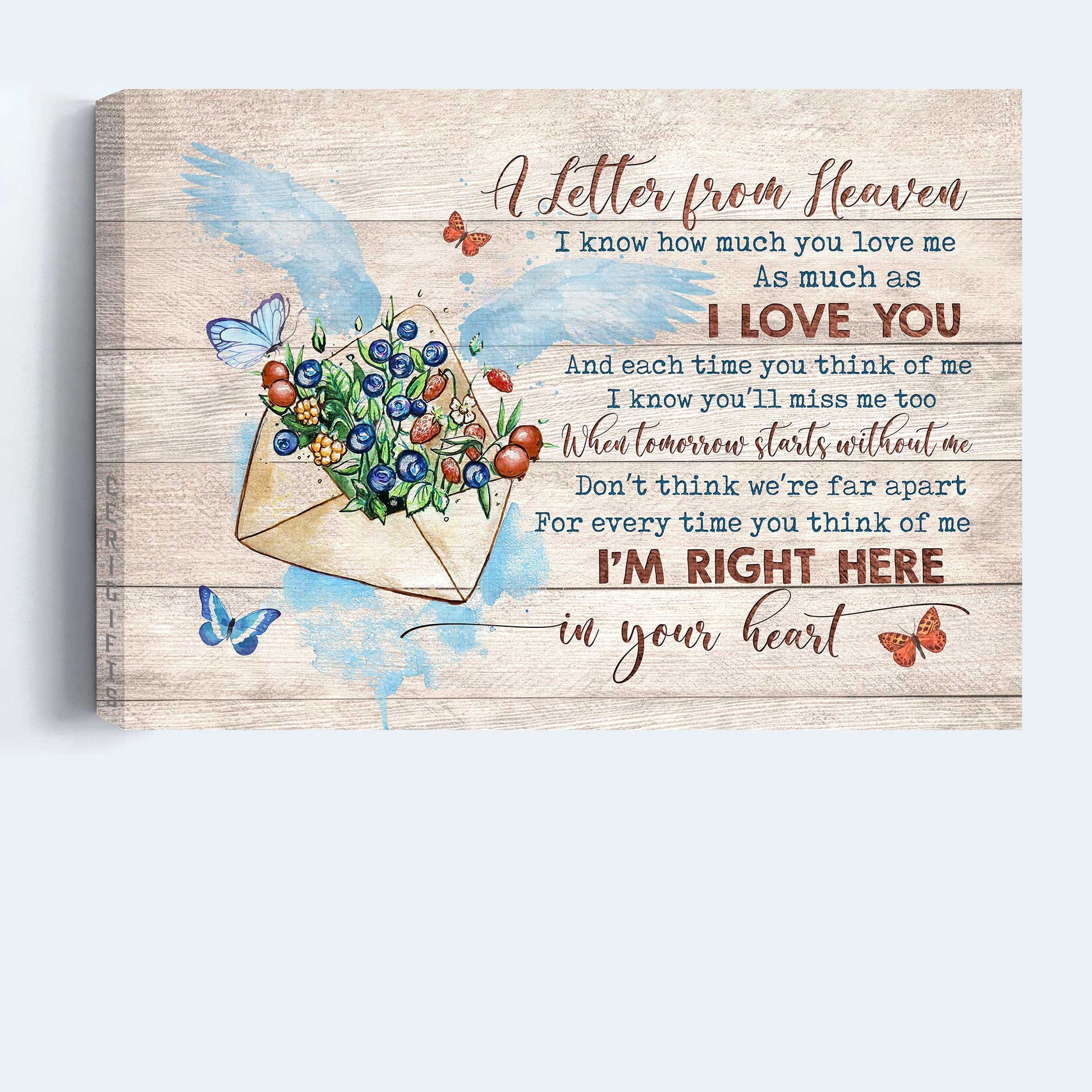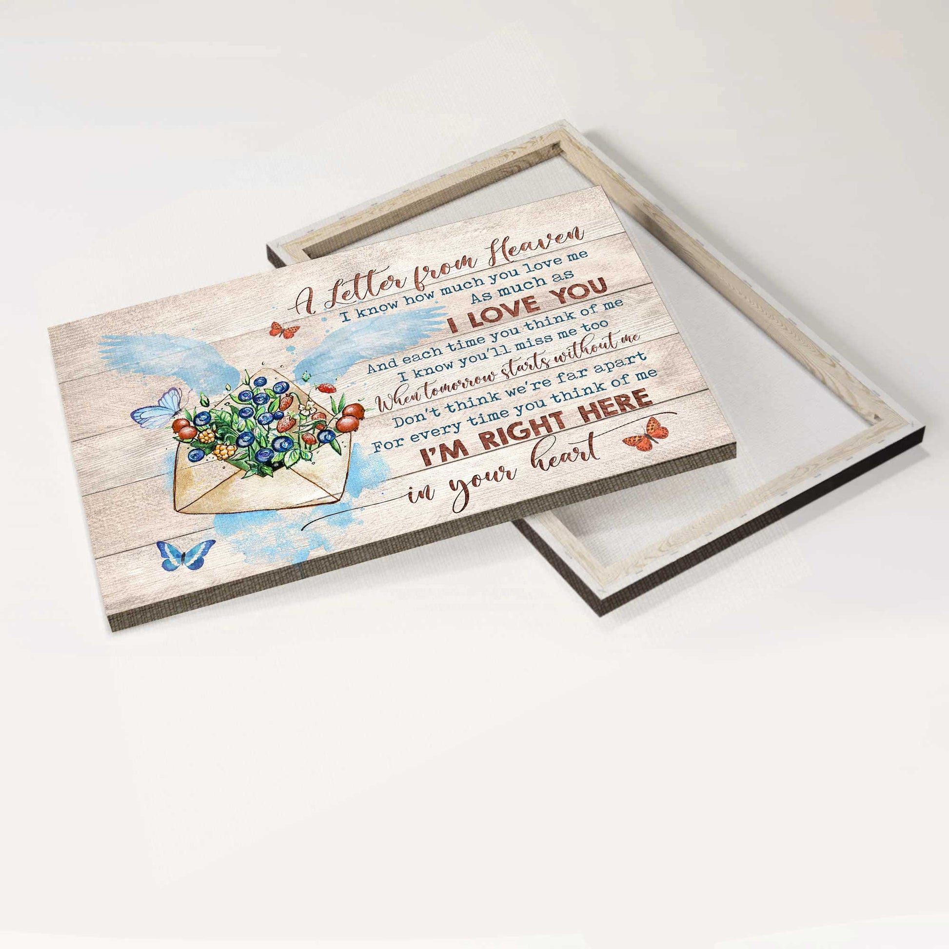 Memorial Landscape Canvas- Flower painting, Butterfly canvas- Gift for family- Letter from heaven, I'm right here in your heart - Heaven Landscape Canvas Prints, Wall Art.